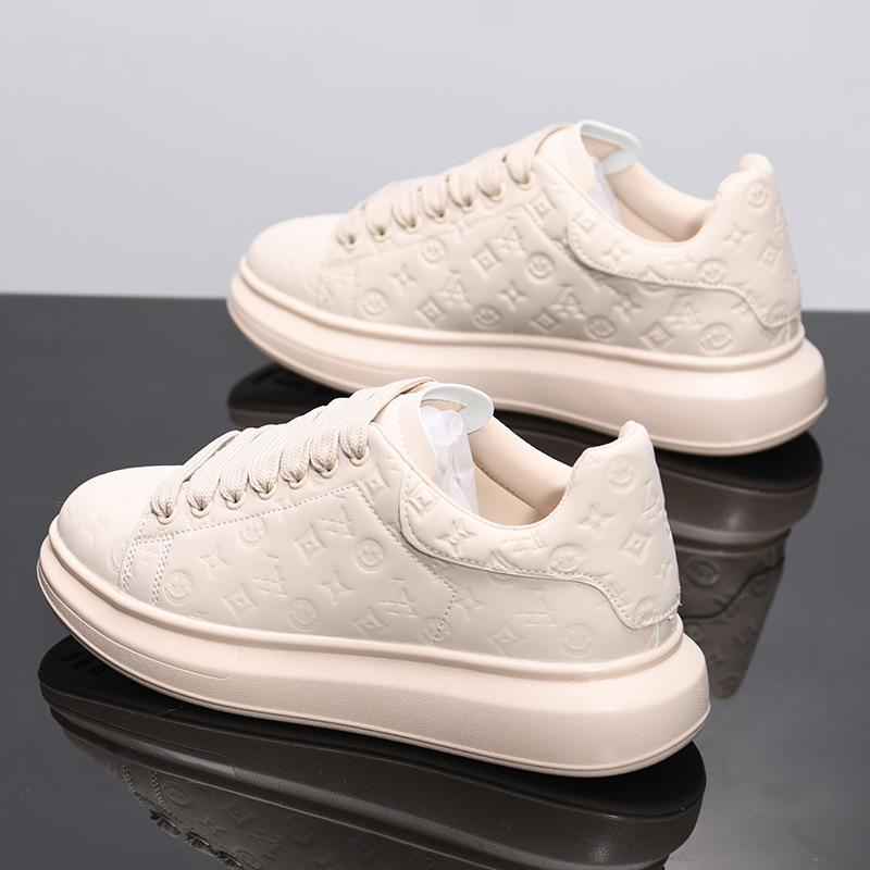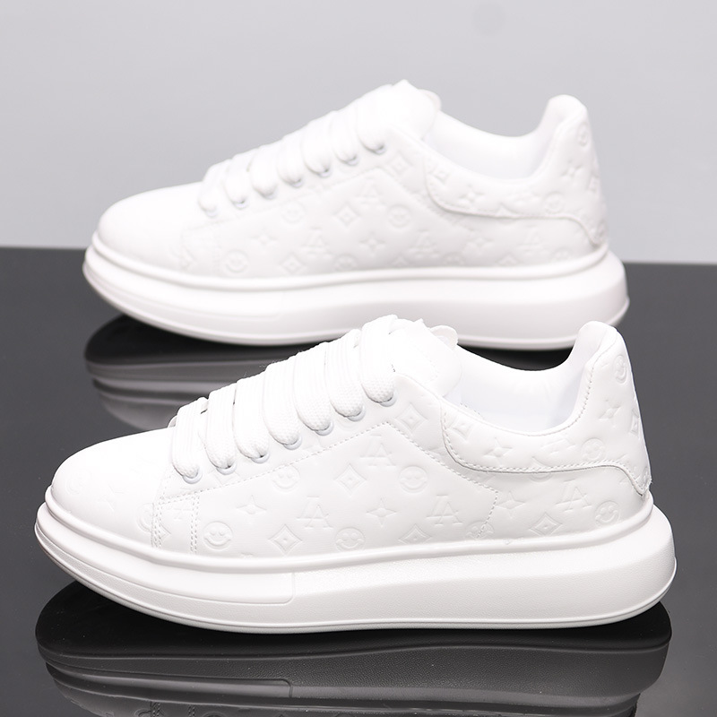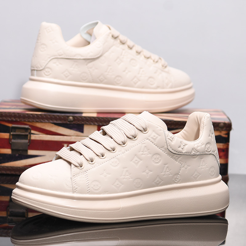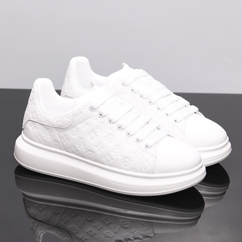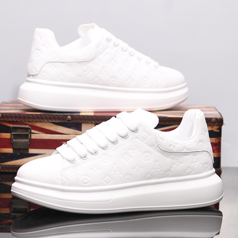 McQueen White Shoes 남성 신발 봄과 여름 새로운 정품 가죽 두꺼운 밑창 높이 증가 캐주얼 보드 신발 남녀 아빠 트렌디 신발 KY203스토어 가기