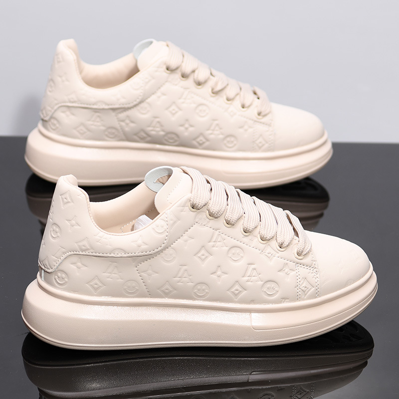 McQueen White Shoes 남성 신발 봄과 여름 새로운 정품 가죽 두꺼운 밑창 높이 증가 캐주얼 보드 신발 남녀 아빠 트렌디 신발 KY203