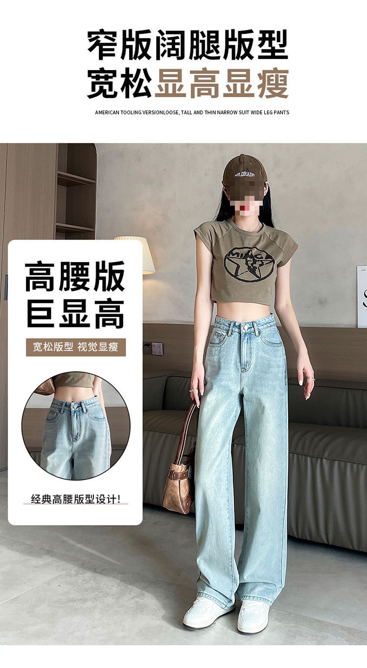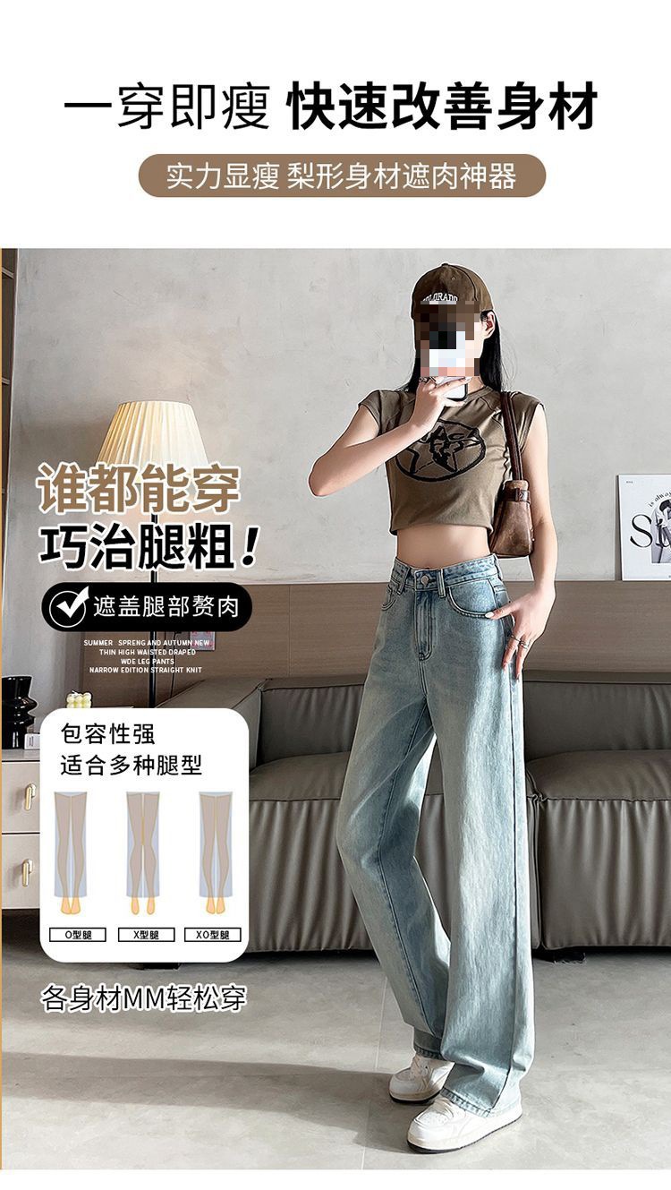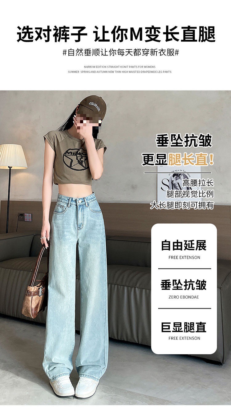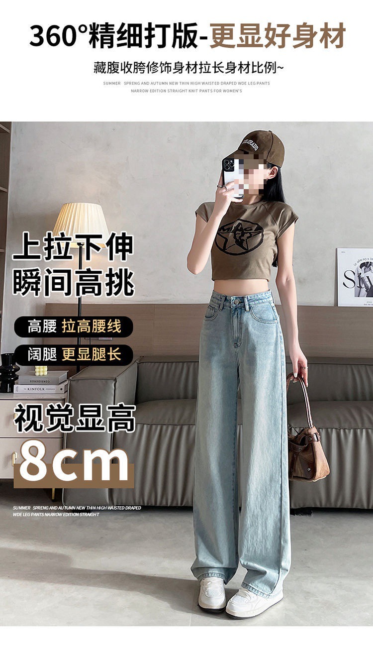 인터넷 연예인 같은 스타일 여름 얇은 좁은 넓은 다리 청바지 여성의 2024 새로운 높은 허리 느슨한 슬리밍 스트레이트 바지스토어 가기