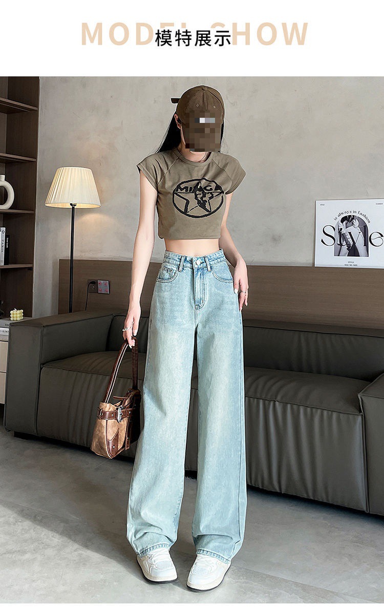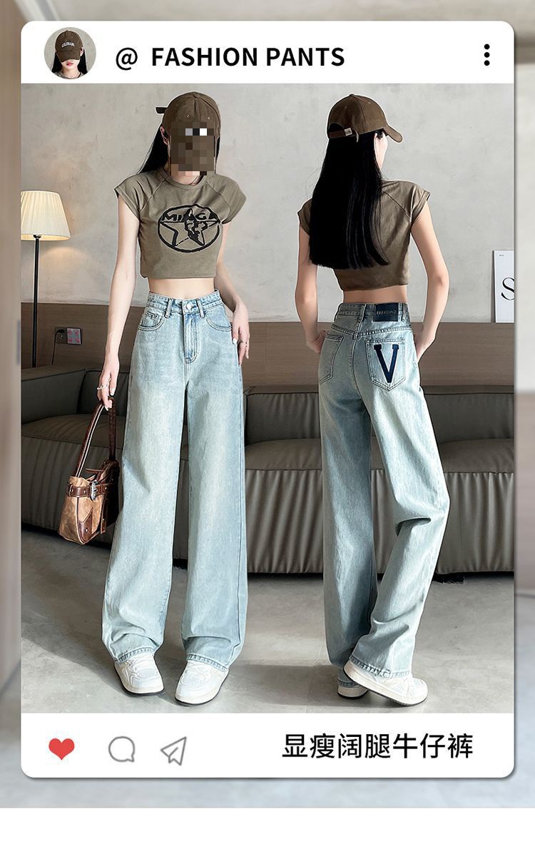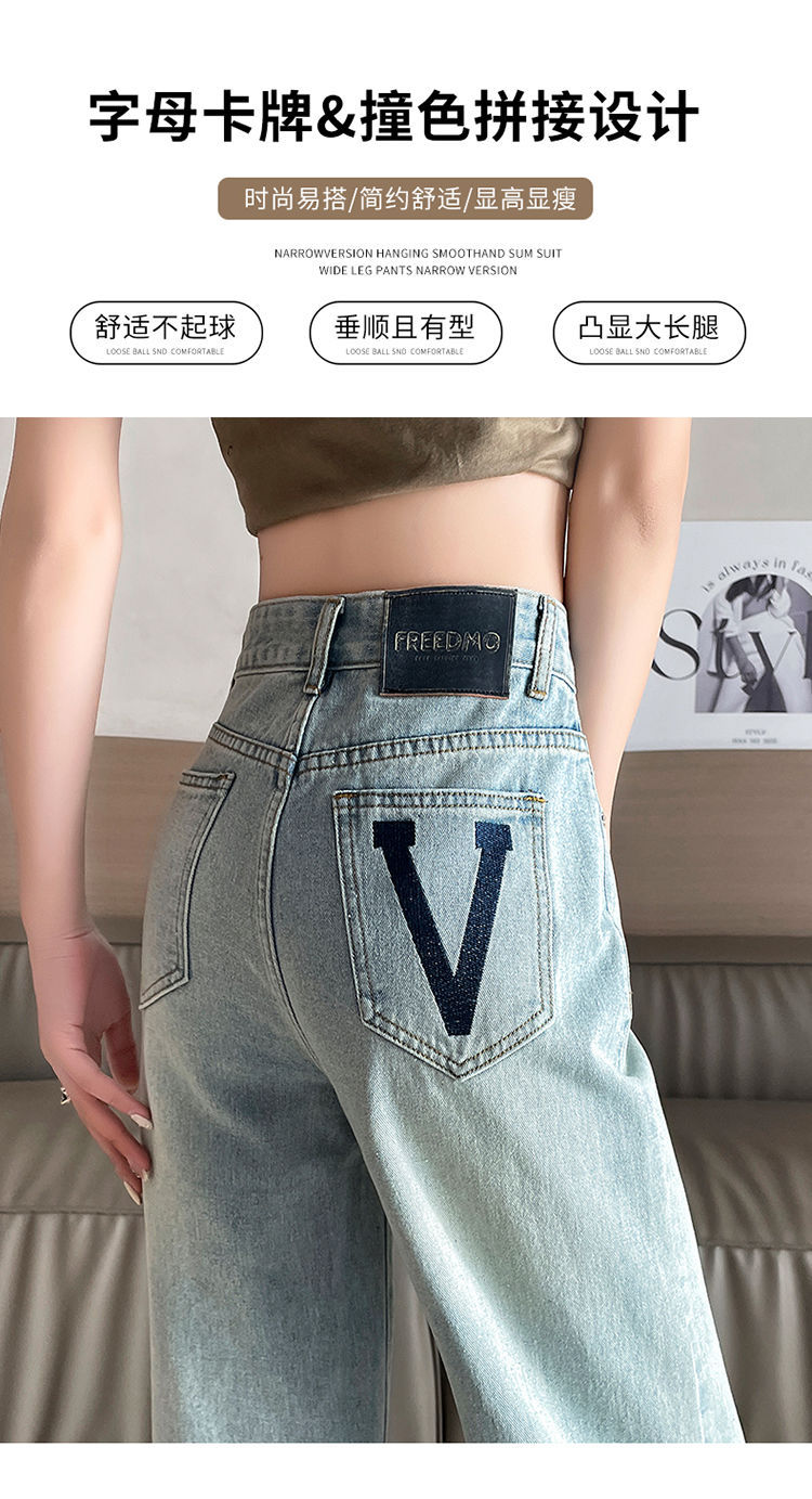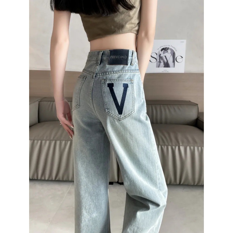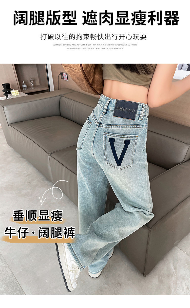 인터넷 연예인 같은 스타일 여름 얇은 좁은 넓은 다리 청바지 여성의 2024 새로운 높은 허리 느슨한 슬리밍 스트레이트 바지스토어 가기