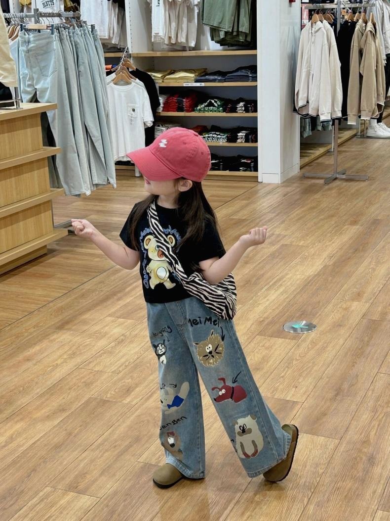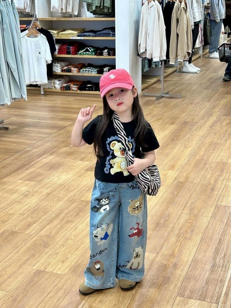 여아 프린트 데님 팬츠 여름옷 2025 신상 한국 스타일 패셔너블 아동 얇은 긴바지 여아 여름 스트레이트 팬츠스토어 가기