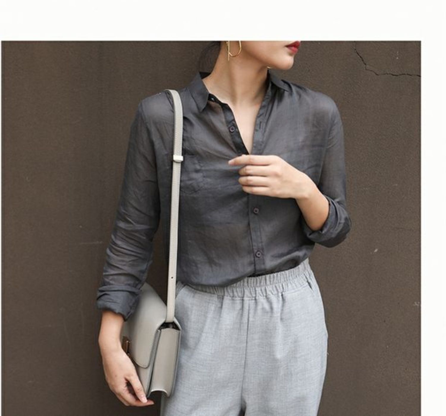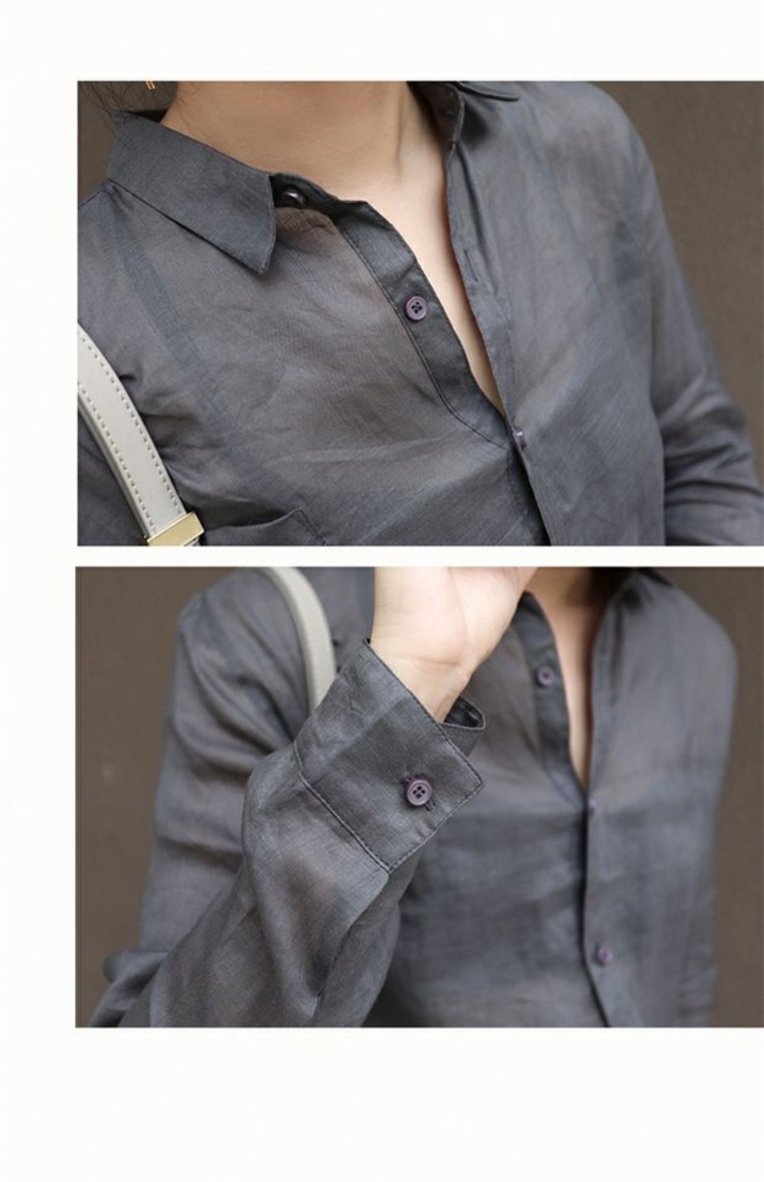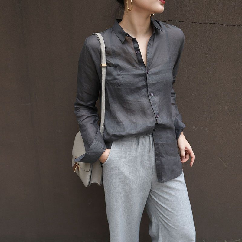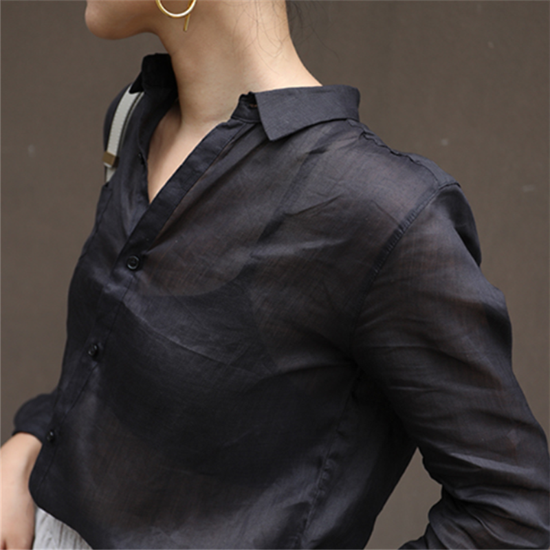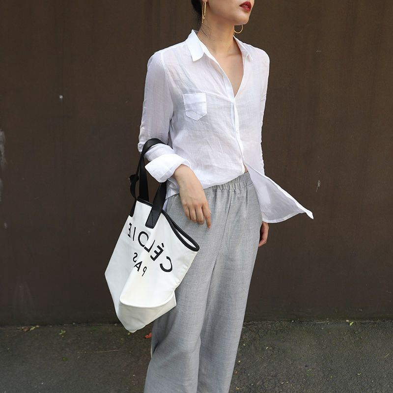 틈새 계획 최고 디자인 감각 순수한 라미면과 린넨 소녀 긴 소매 느슨한 캐주얼 셔츠 흰색 셔츠