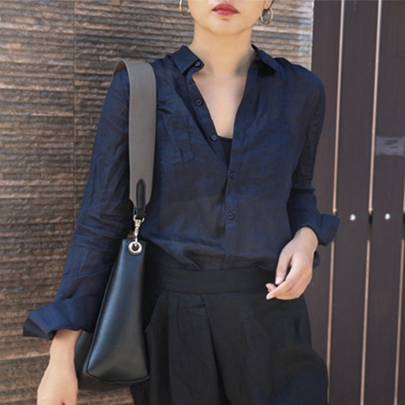 틈새 계획 최고 디자인 감각 순수한 라미면과 린넨 소녀 긴 소매 느슨한 캐주얼 셔츠 흰색 셔츠스토어 가기