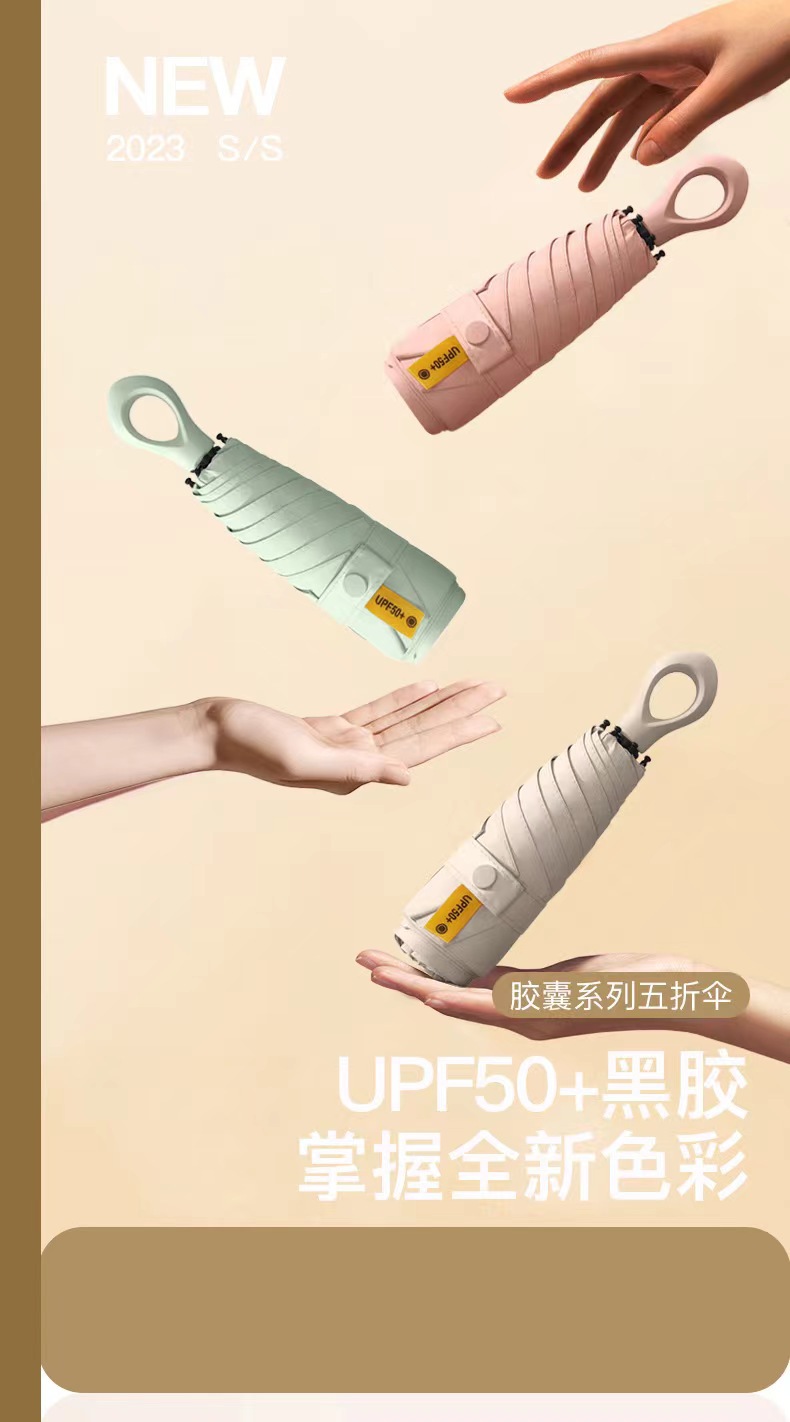 새로운 마카롱 컬러 링 핸들 5 배 우산 울트라 라이트 태양 보호 양산 소형 휴대용 미니 태양 우산