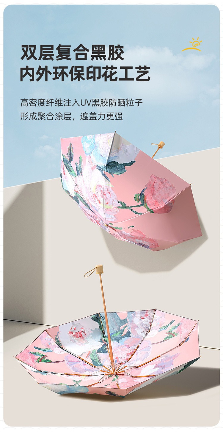 더블 레이어 더블 플라워 50% 8-bone 태양 우산 여성 일러스트 손으로 그린 바람 작고 편리한 이중 사용 양산 우산스토어 가기