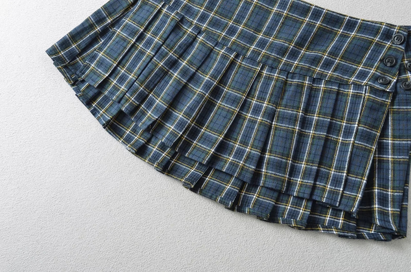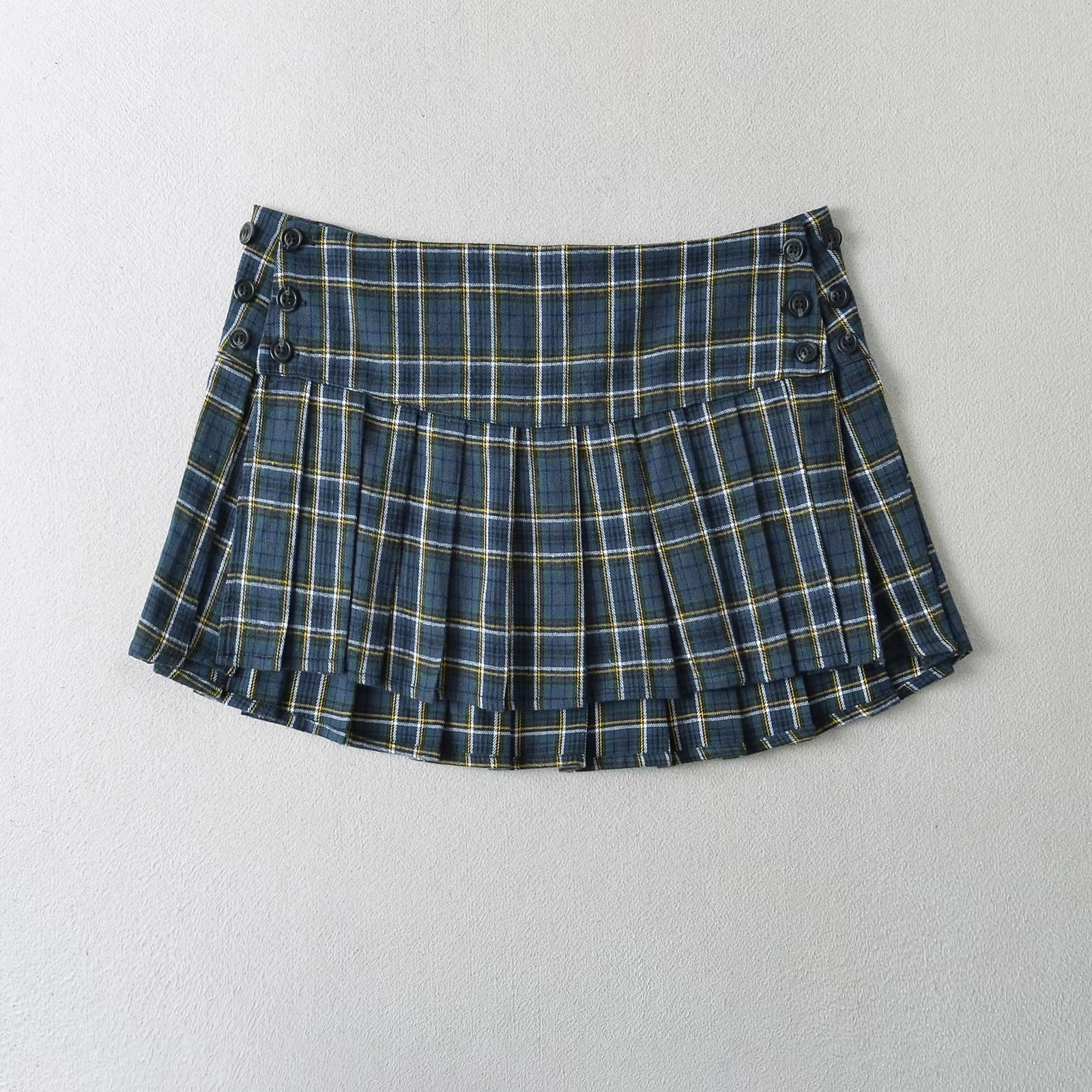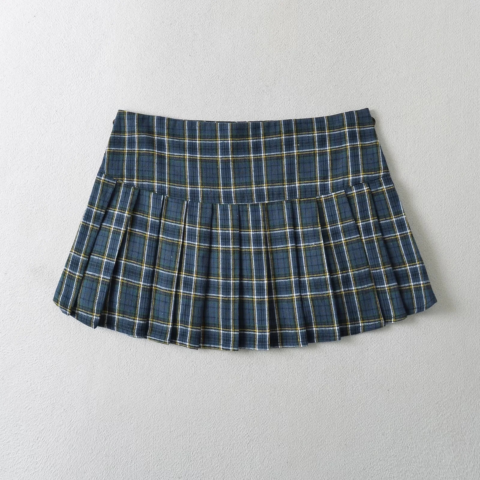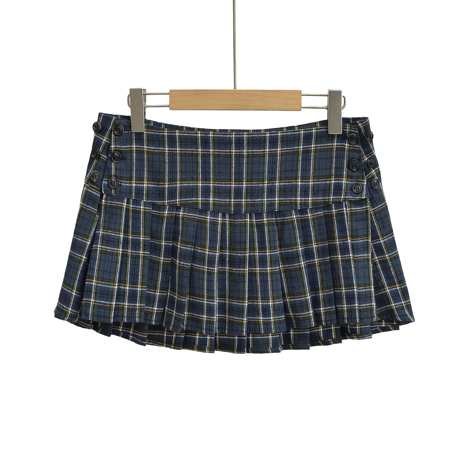 미국 스타일 뜨거운 소녀 낮은 허리 격자 무늬 스커트 여성 여름 대학 스타일 JK 주름 치마 다리 긴 A 라인 미니 스커트