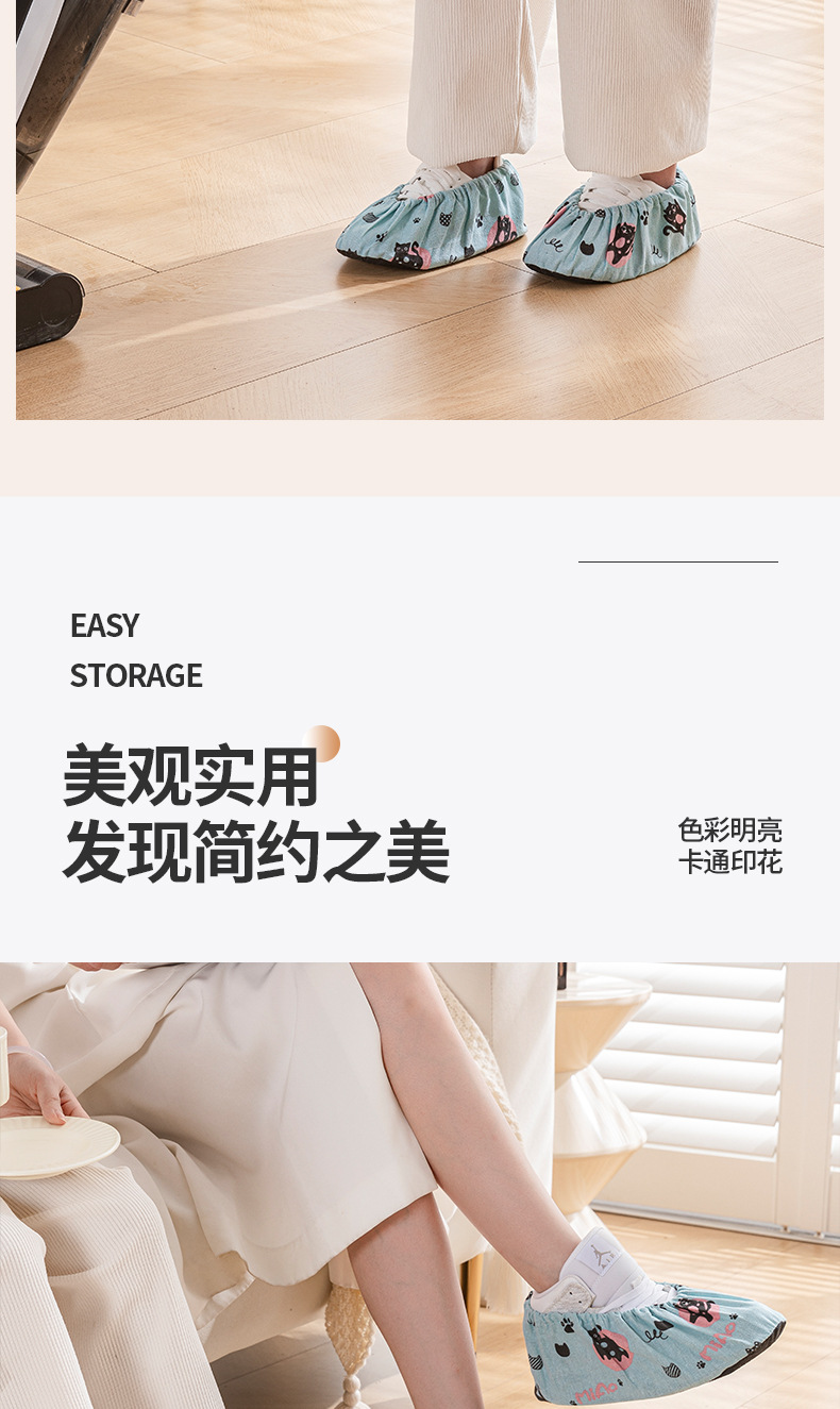 패브릭 미끄럼 방지 신발 커버 어린이 만화 인쇄 미끄럼 방지 학생 컴퓨터 룸 발 커버 반복적으로 세척 가능한 두꺼운 천 신발 커버스토어 가기