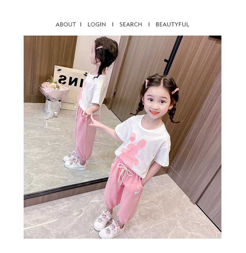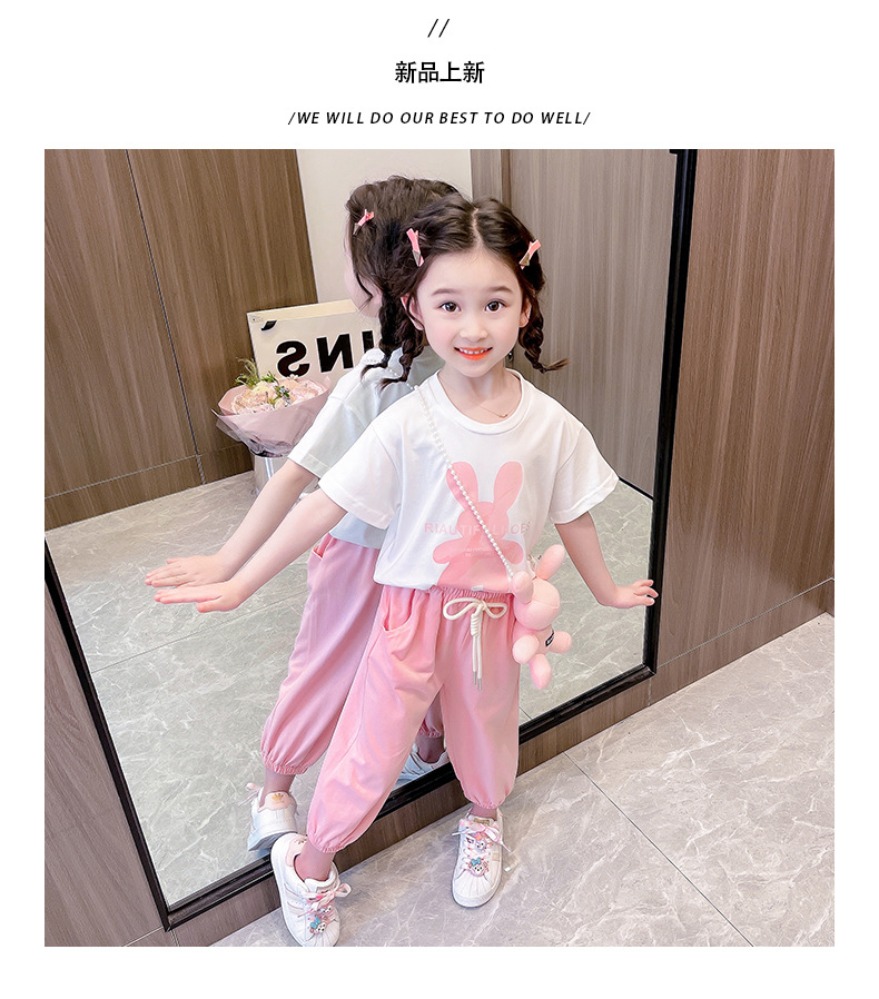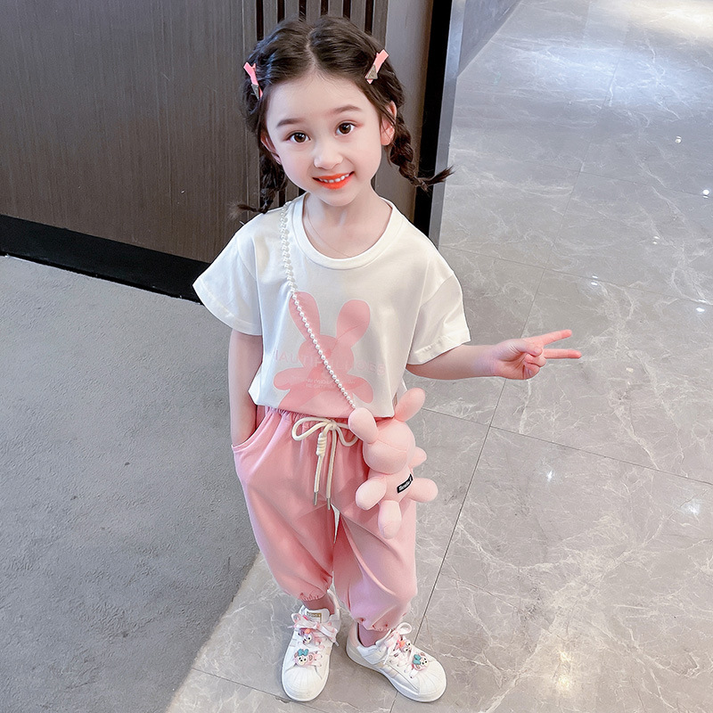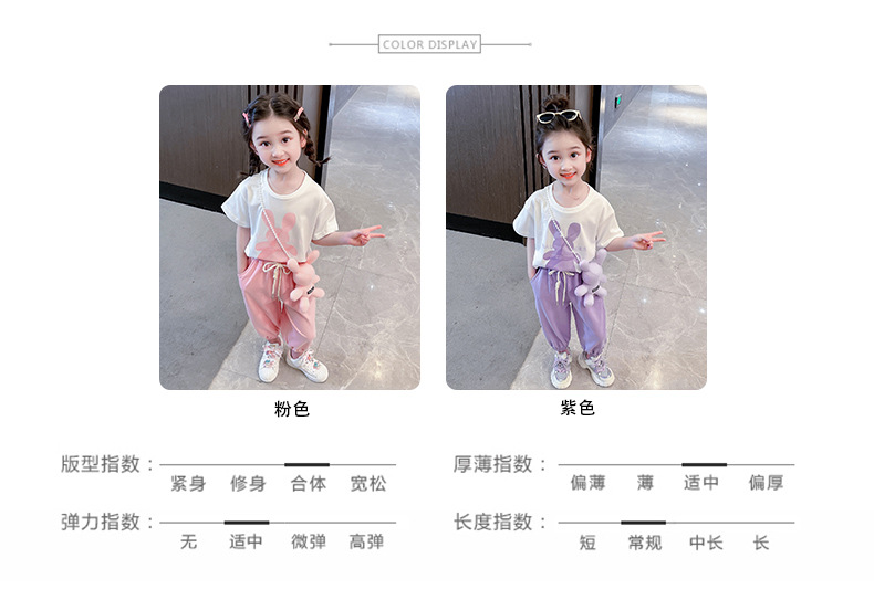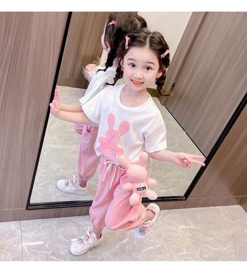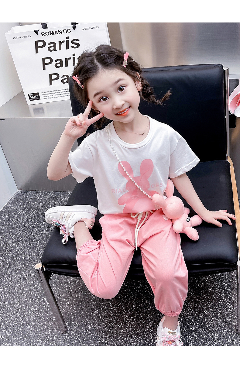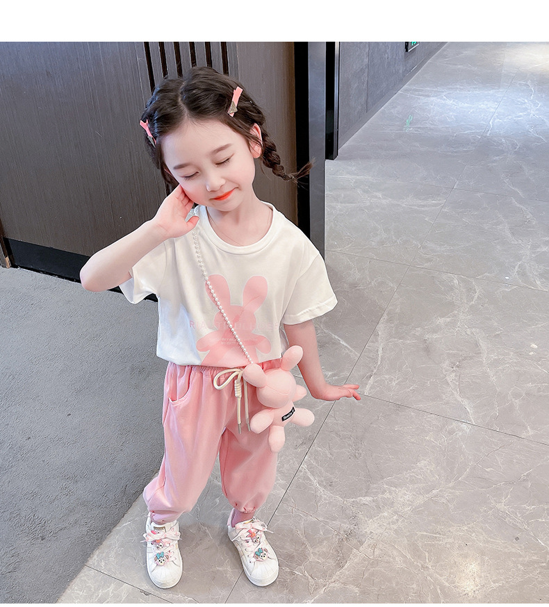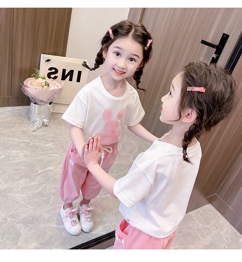 • YC 토끼 짧은 소매 세트 분말 토끼