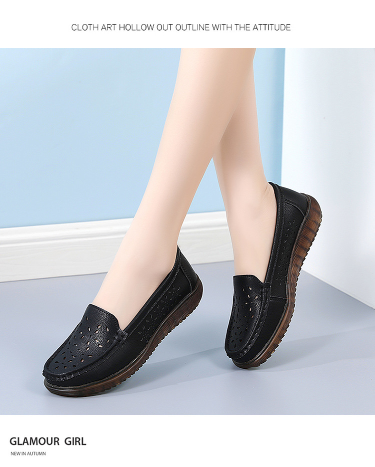 국경 간 어머니 신발 여름 중공 가죽 신발 여성 정품 가죽 신발 소프트 단독 중년 및 노인 홀드 샌들 여성용 플랫 솔스토어 가기
