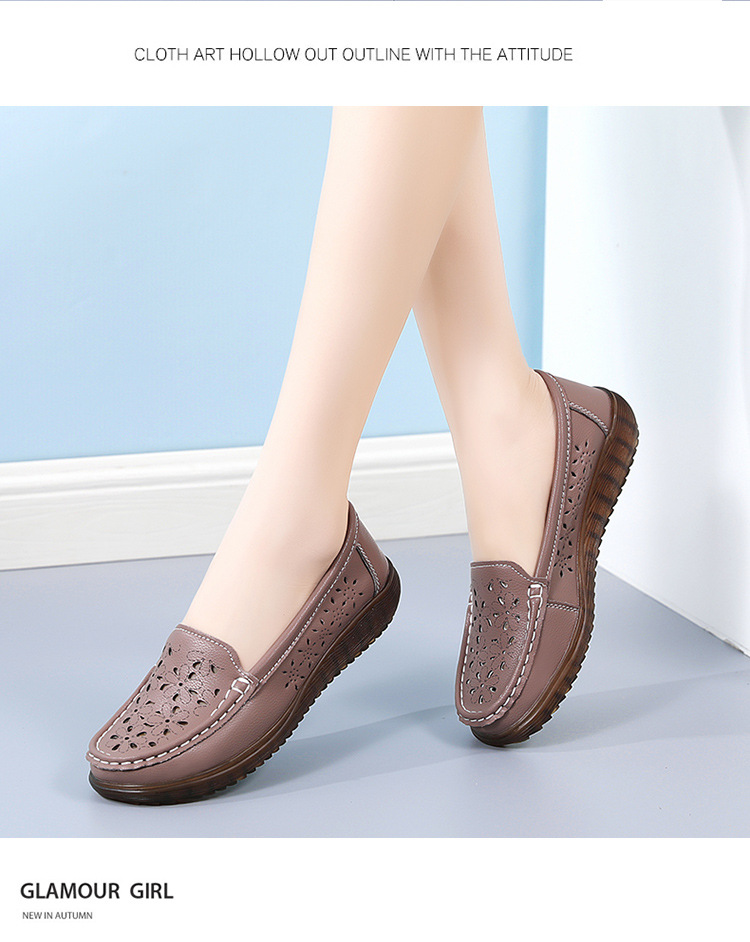 국경 간 어머니 신발 여름 중공 가죽 신발 여성 정품 가죽 신발 소프트 단독 중년 및 노인 홀드 샌들 여성용 플랫 솔