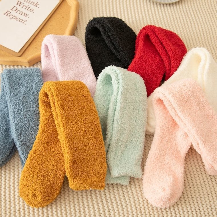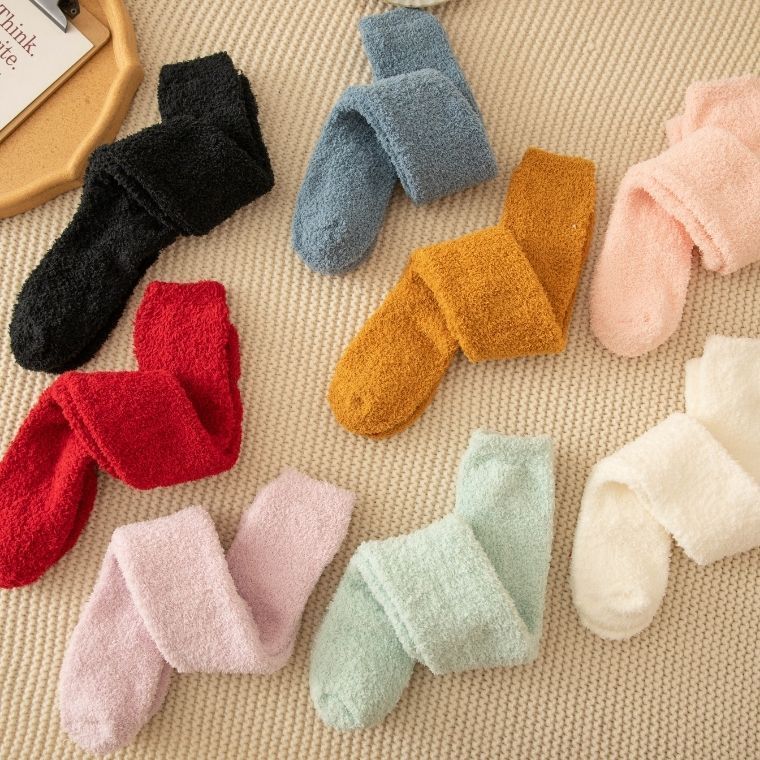 여성용 산호 벨벳 양말, 가을 겨울 종아리 양말, 산후 양말, 보온성 강화, 중간 길이, 겨울용 수면 양말스토어 가기