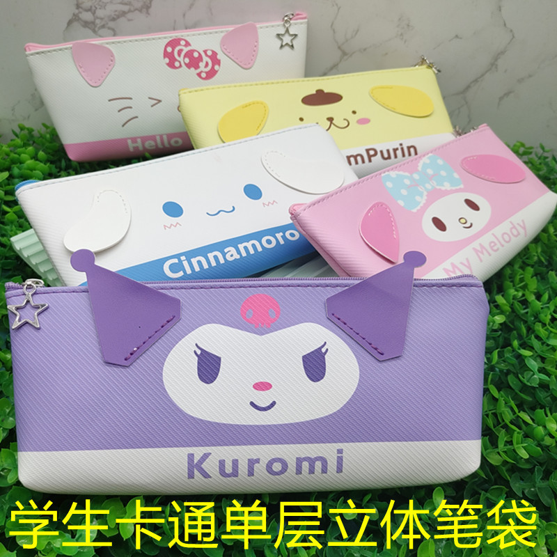 산리오 만화 싱글 레이어 연필 가방 두꺼운 3 차원 스타일링 문구 가방 어린이 귀여운 대용량 연필 가방 PU스토어 가기