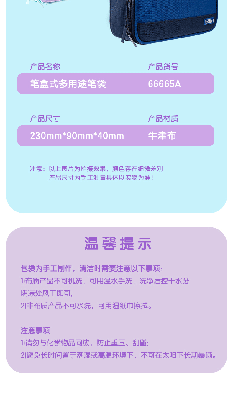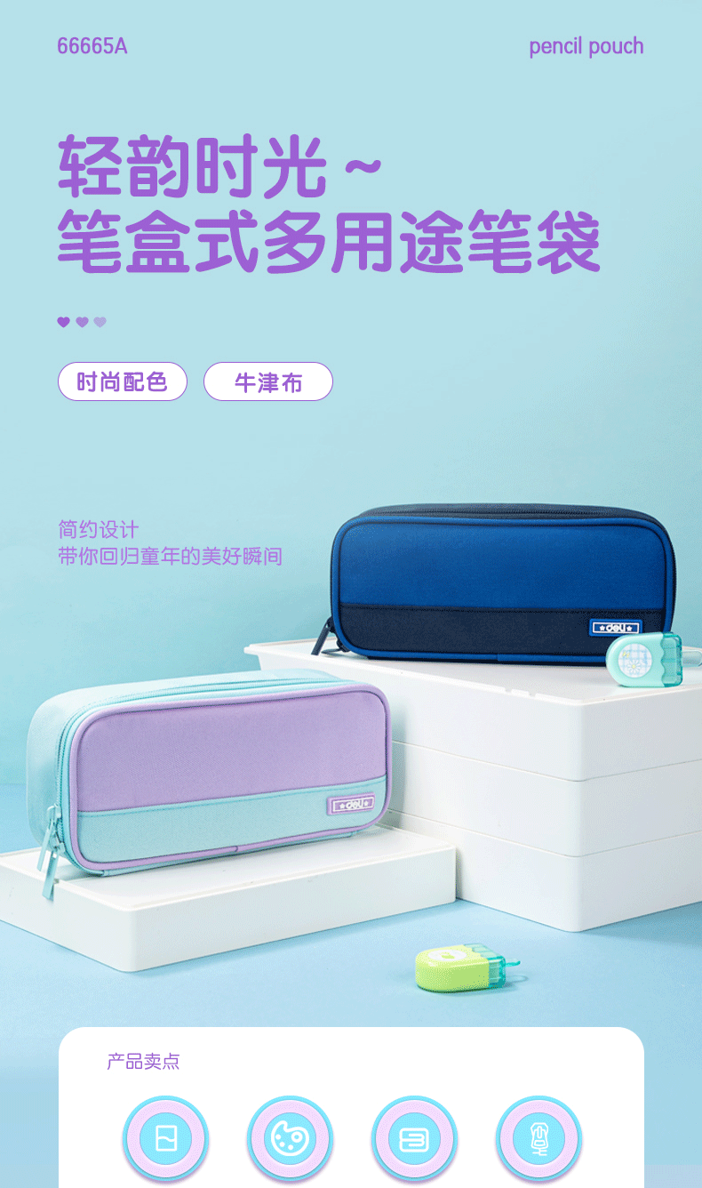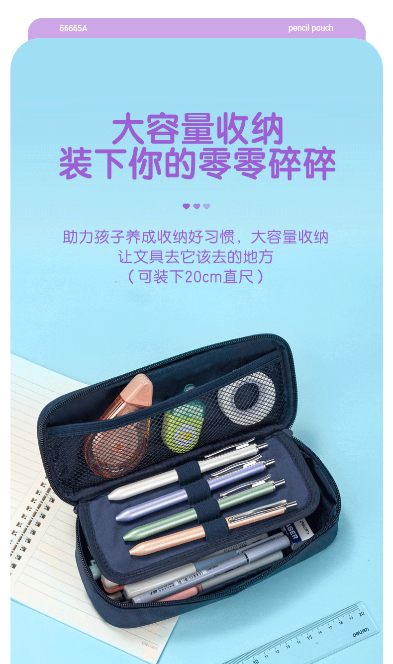 델리 66665A 펜 케이스, 펜 박스, 다용도 대용량 수납함, 수납 가방, 파일 가방, 옥스포드 천 소재, 소형 및 휴대 가능스토어 가기
