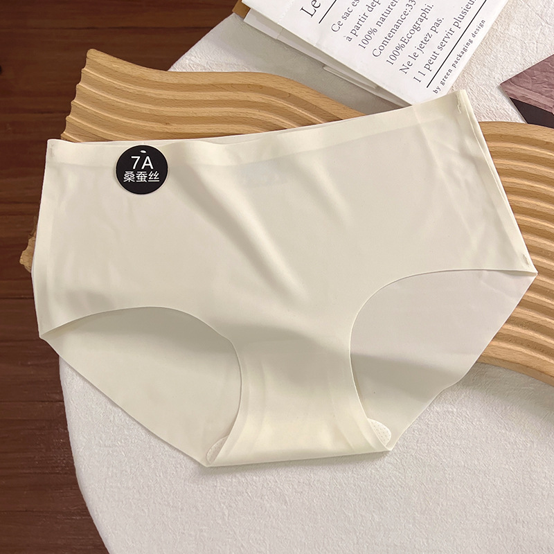 【신상】가을 겨울 여성용 무봉제 속옷 부드러운 실크 안감 중간 허리 여성 삼각팬티스토어 가기