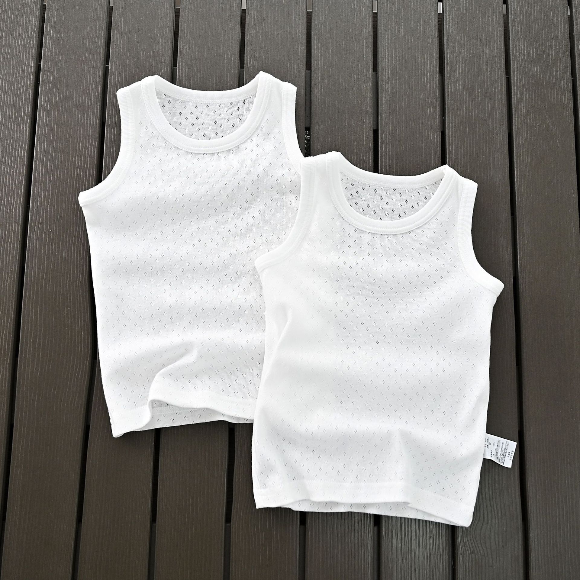 수출 하위 아동복 소스 공장 일본 메쉬 중공 면화 흰색 아동베이스 조끼 땀 흡수성 남성스토어 가기