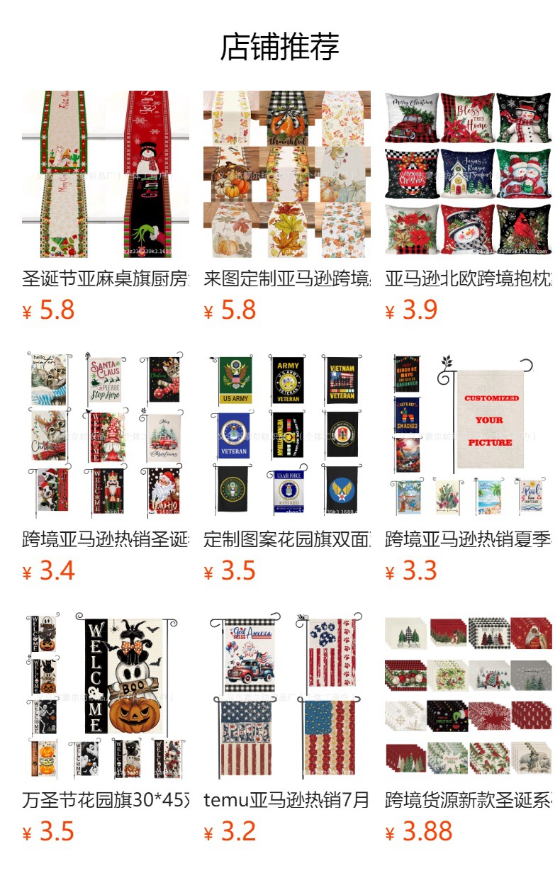 4.春节、情人节、圣帕特里克节、母亲节、复活节、独立日、万圣节、感恩节、圣诞节、常规印花款等多种热门节日,均可定制图案/尺寸/材质。