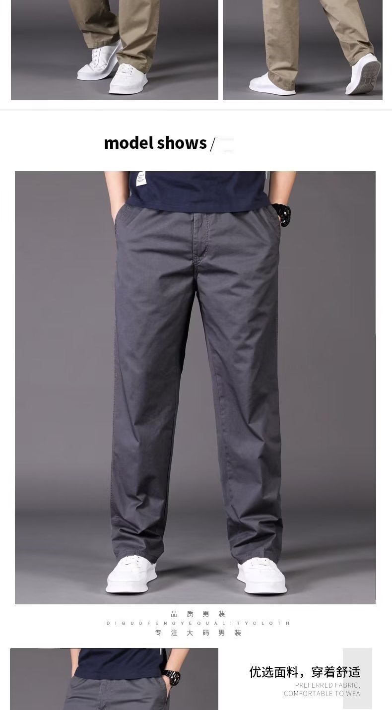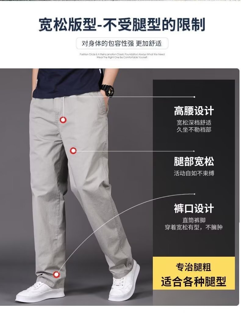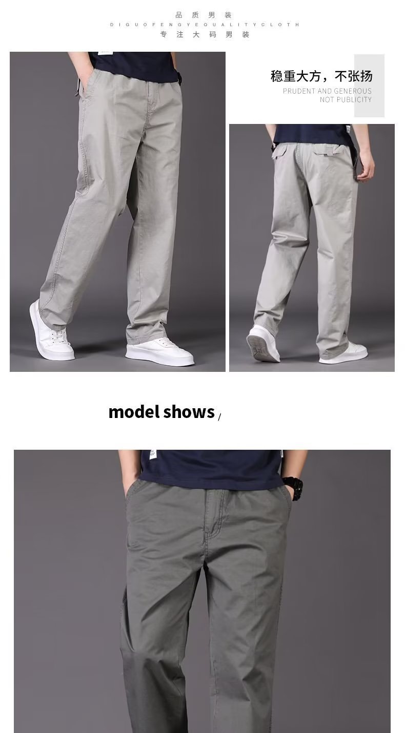 캐주얼 바지 남성용 느슨한 스트레이트 바지 멀티 포켓 플러스 사이즈 얇은 봄과 여름 솔리드 컬러 오버홀 중년 및 청소년스토어 가기