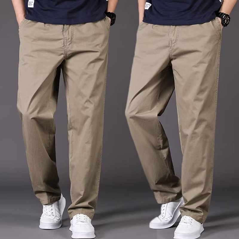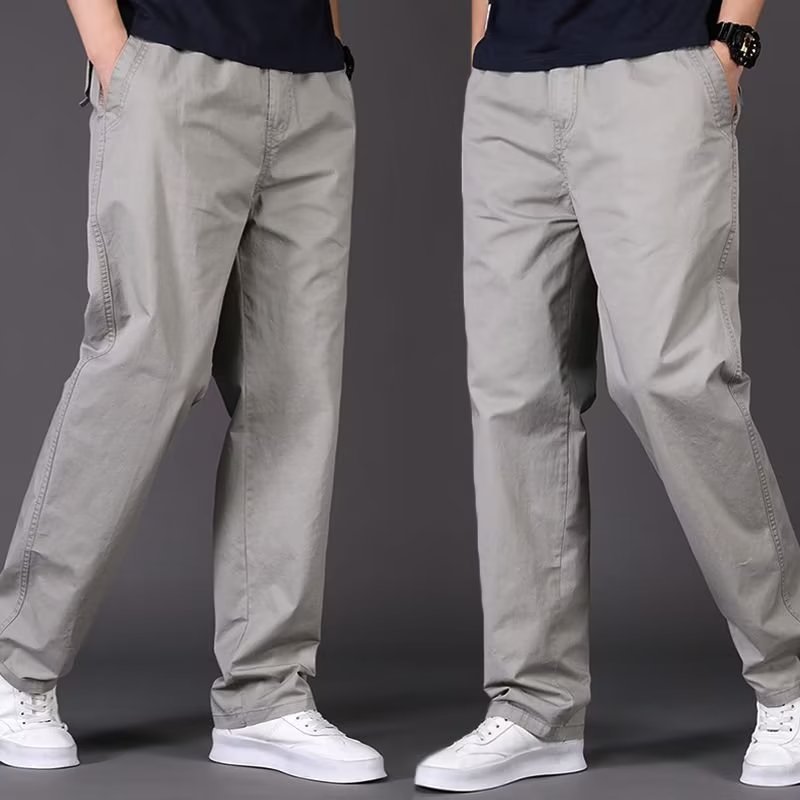 캐주얼 바지 남성용 느슨한 스트레이트 바지 멀티 포켓 플러스 사이즈 얇은 봄과 여름 솔리드 컬러 오버홀 중년 및 청소년