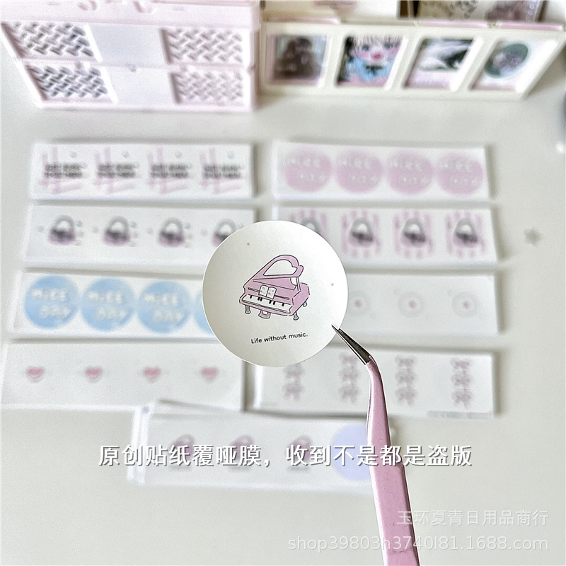 원래 디자인 핑크 피아노 라운드 접착 카드 밀봉 스티커 포장 재료 베이킹 도트 스티커스토어 가기