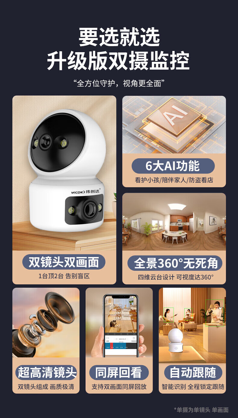 Wei Chuangda WCDKJ 홈 원격 모니터 파노라마 실내 모니터링 HD 나이트 비전 와이파이 감시 카메라스토어 가기
