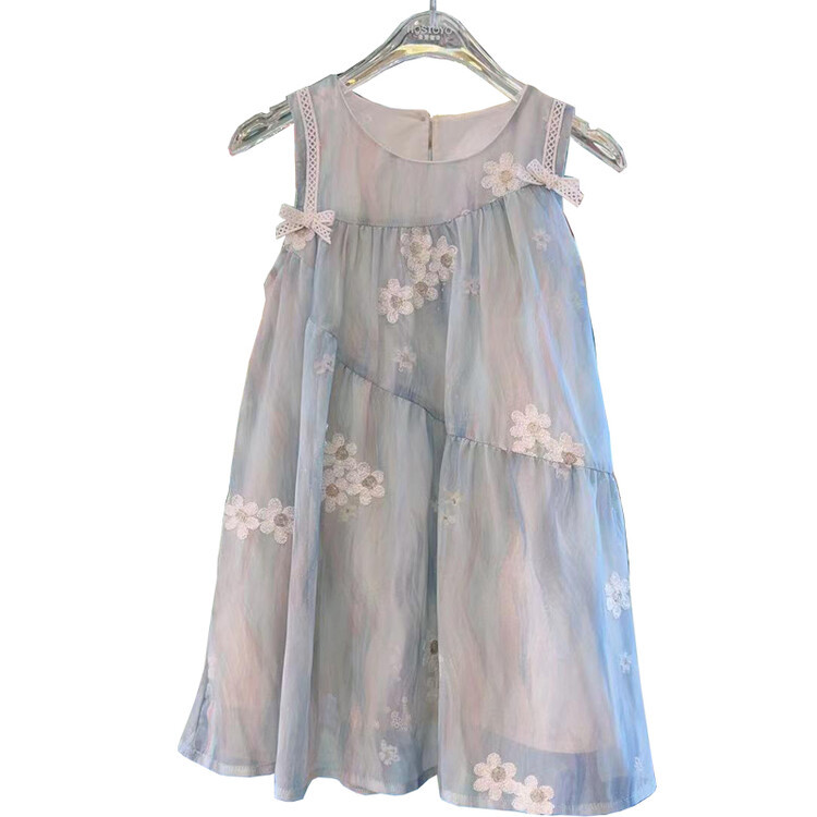 여아 원피스 여름 2024 신상 아동 민소매 조끼 원피스 여름 여아 패셔너블 쉬폰