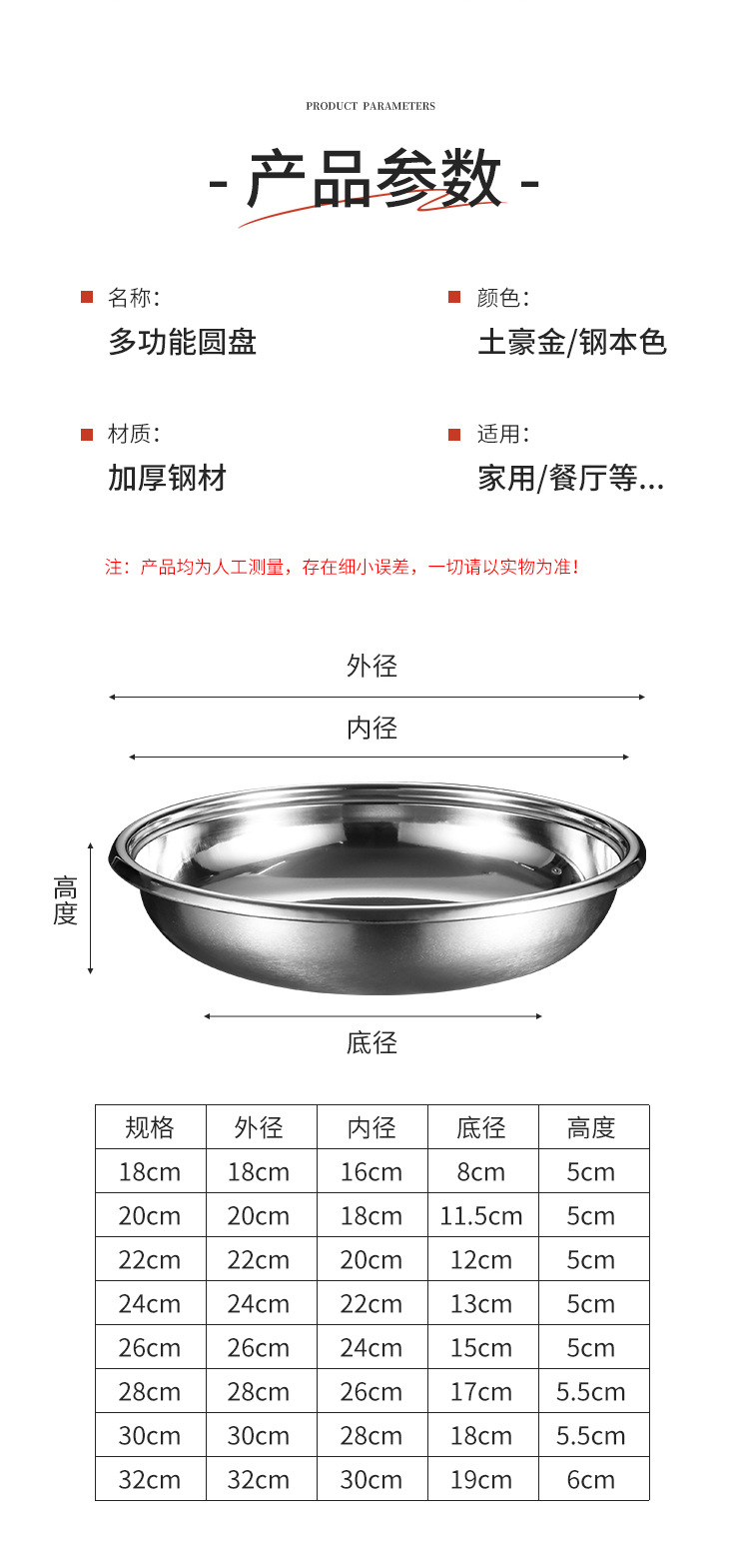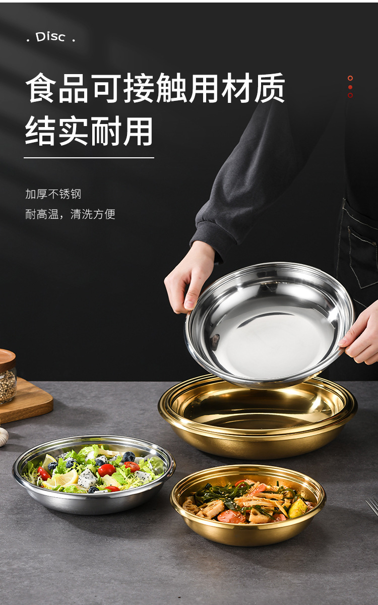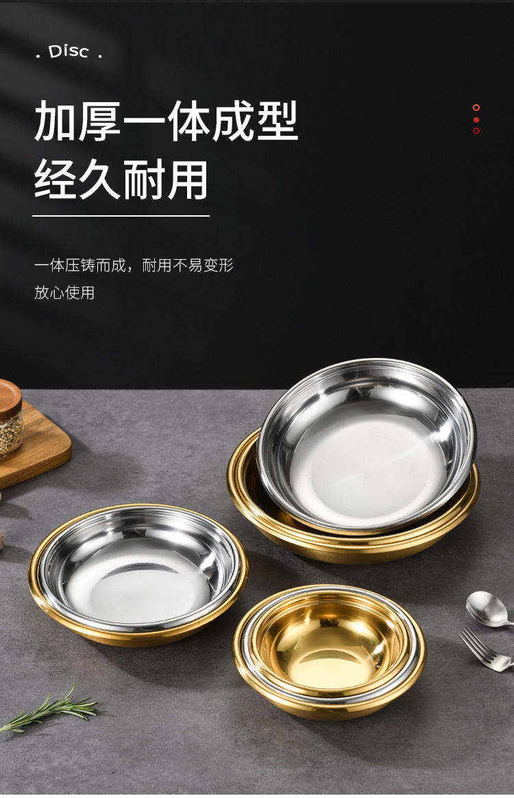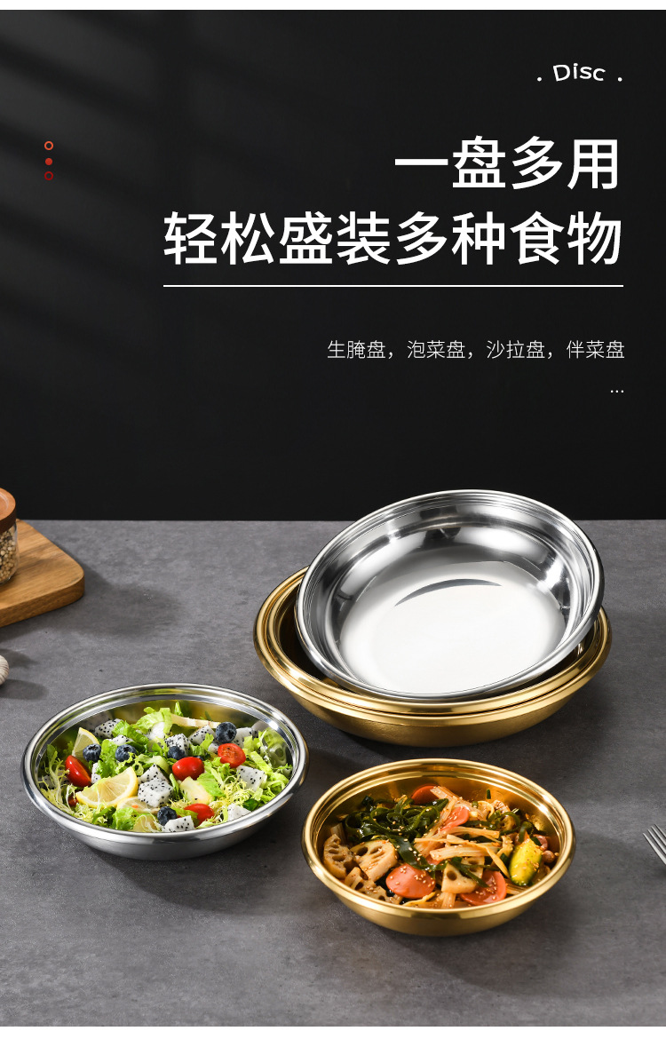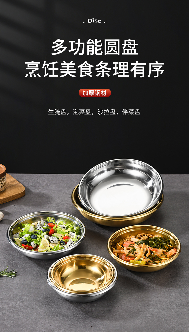국경 간 한식 다목적 접시 스테인레스 스틸 생 절임 접시 피클 샐러드 반찬 원형 접시 바베큐 케이크 접시 깊은 접시