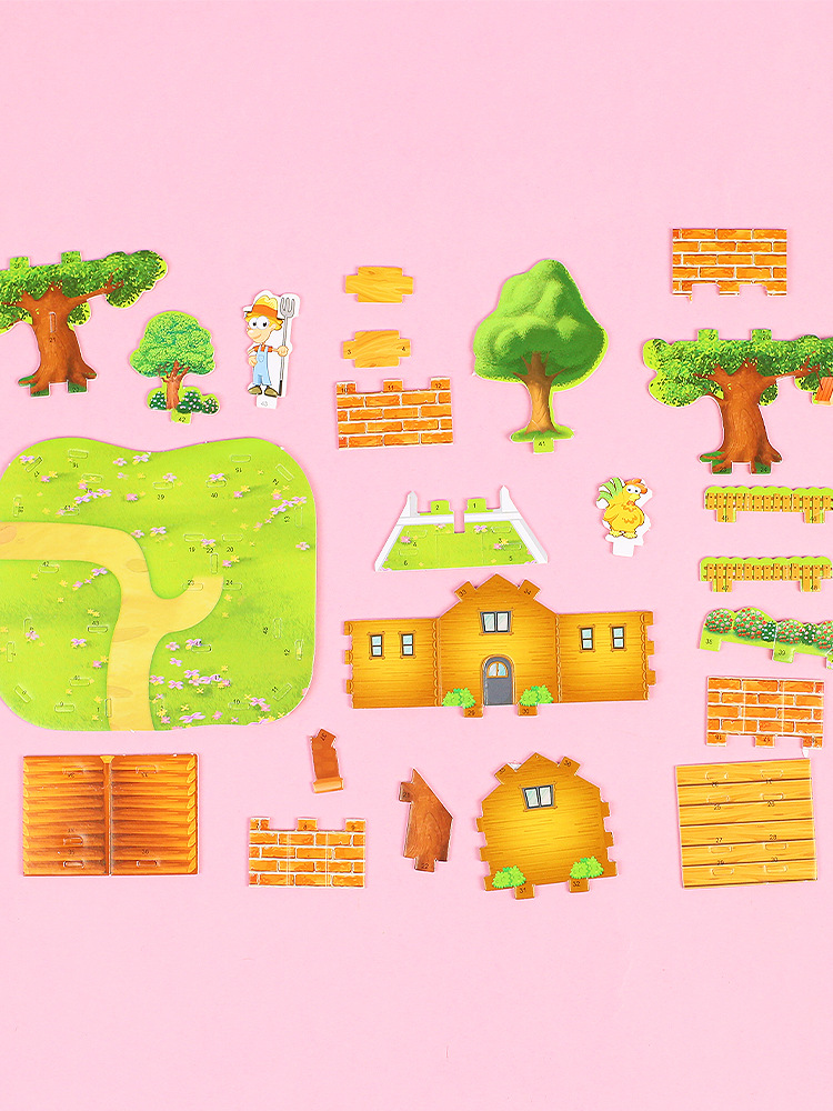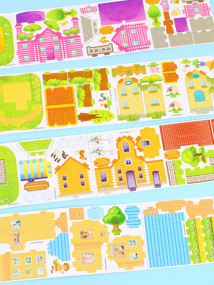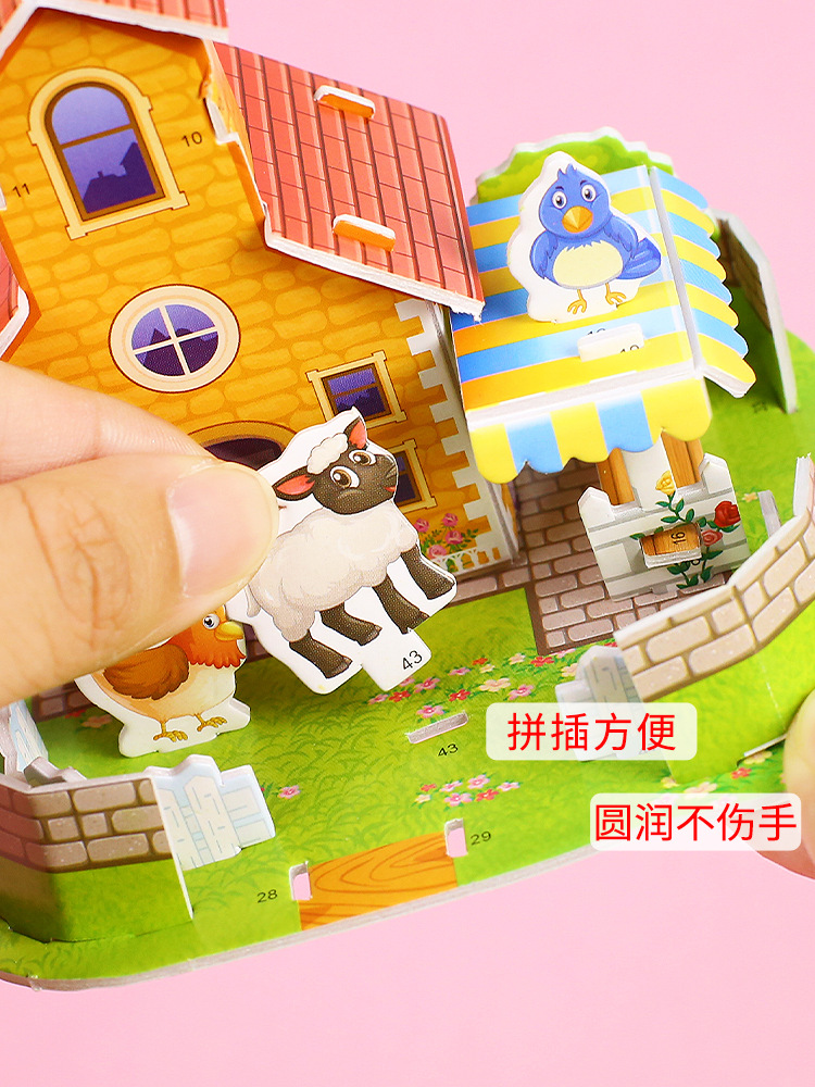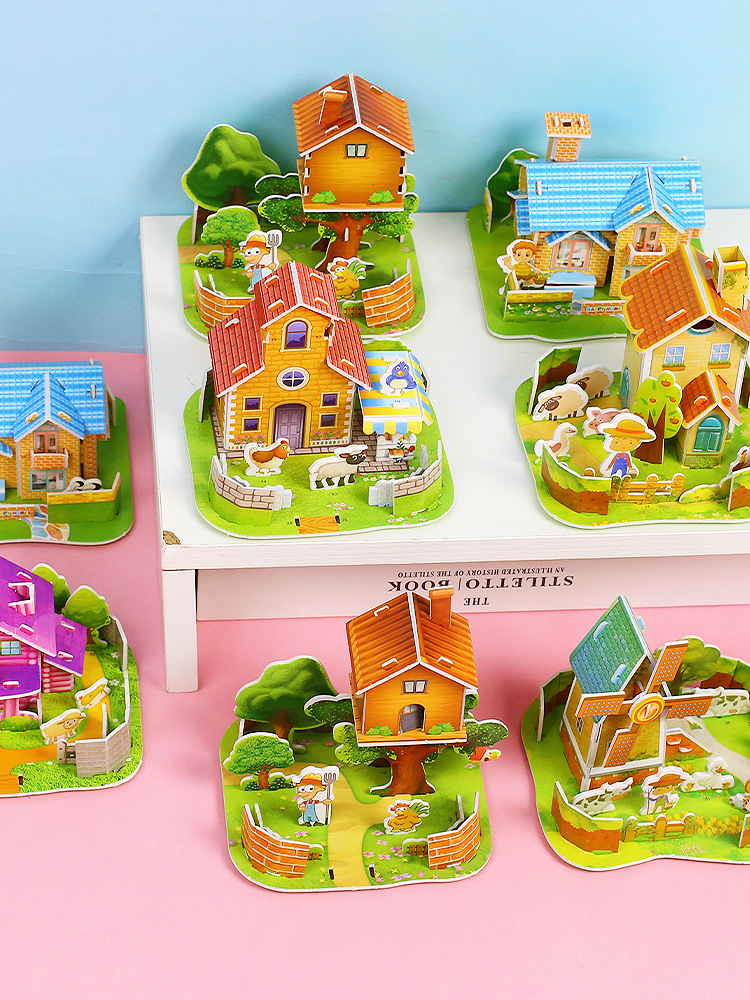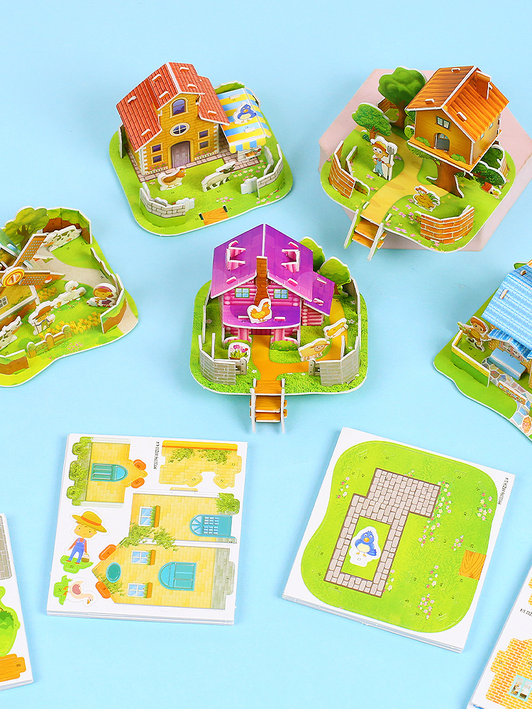 만화 3D 입체 집 퍼즐 어린이 DIY 퍼즐 유아 교육 작은 4 미니 오두막 조립 장난감스토어 가기