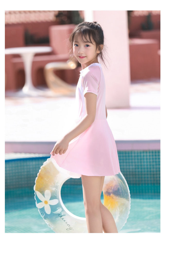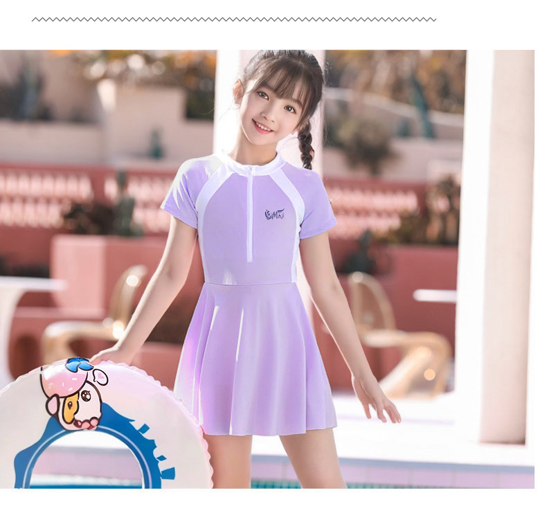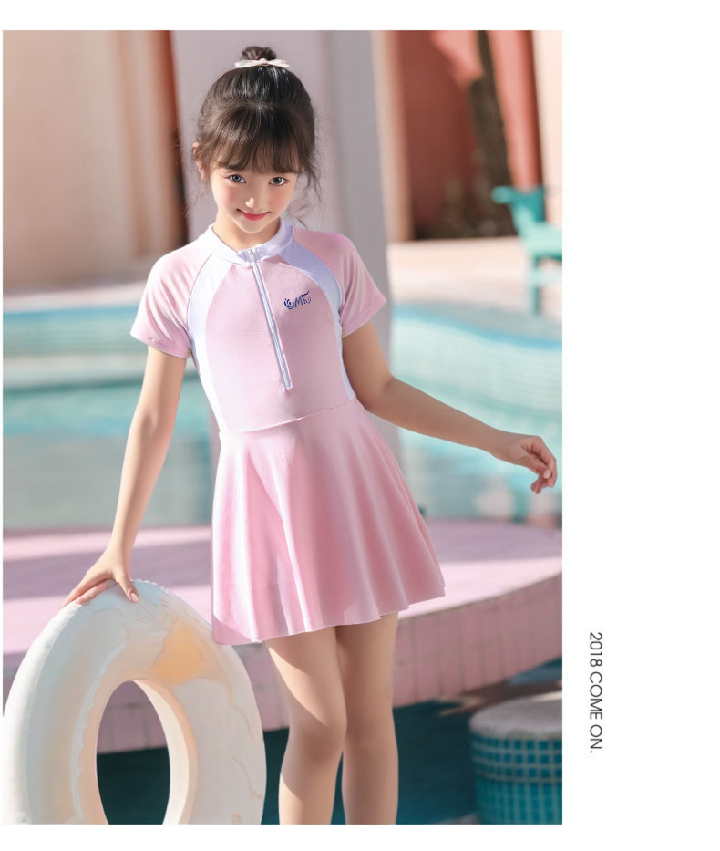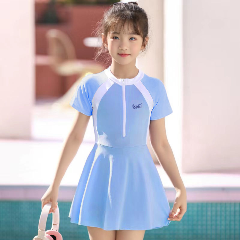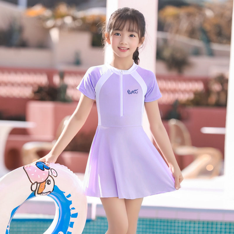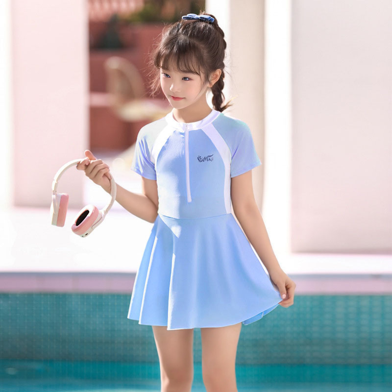 어린이 수영복 여자 원피스 스포츠 패션 컬러 매칭 한국 치마와 가슴 패드 수영복 전문 도매스토어 가기
