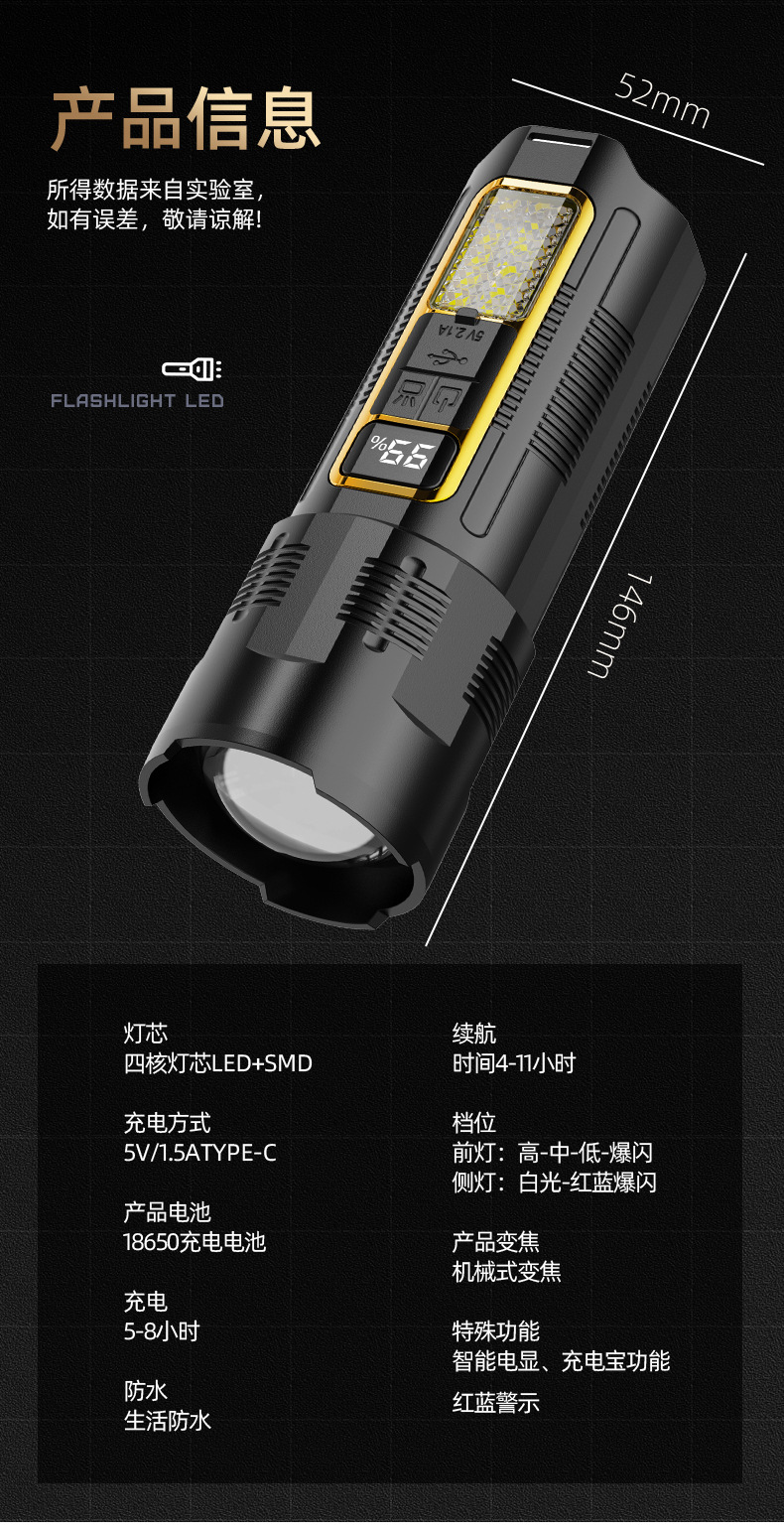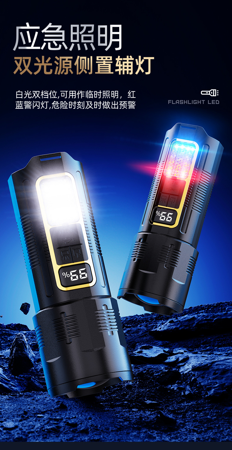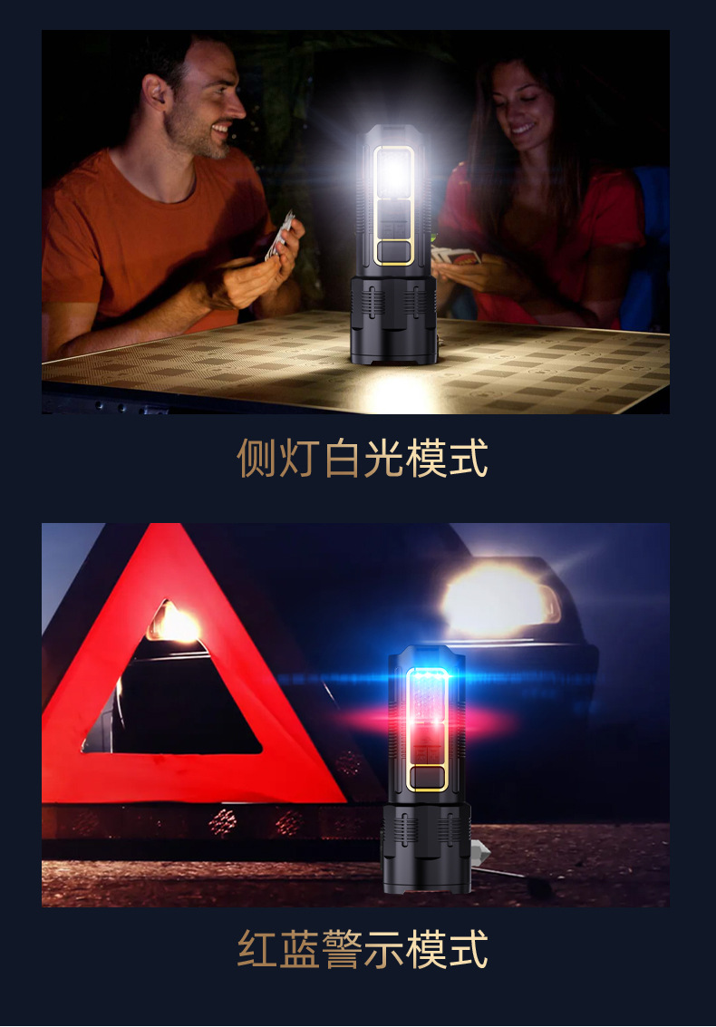 COB 작업 조명이있는 30W 흰색 레이저 손전등 국경 새로운 손전등 USB 충전식 야외 조명스토어 가기