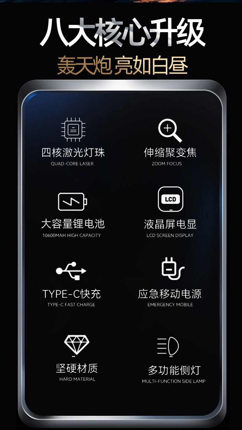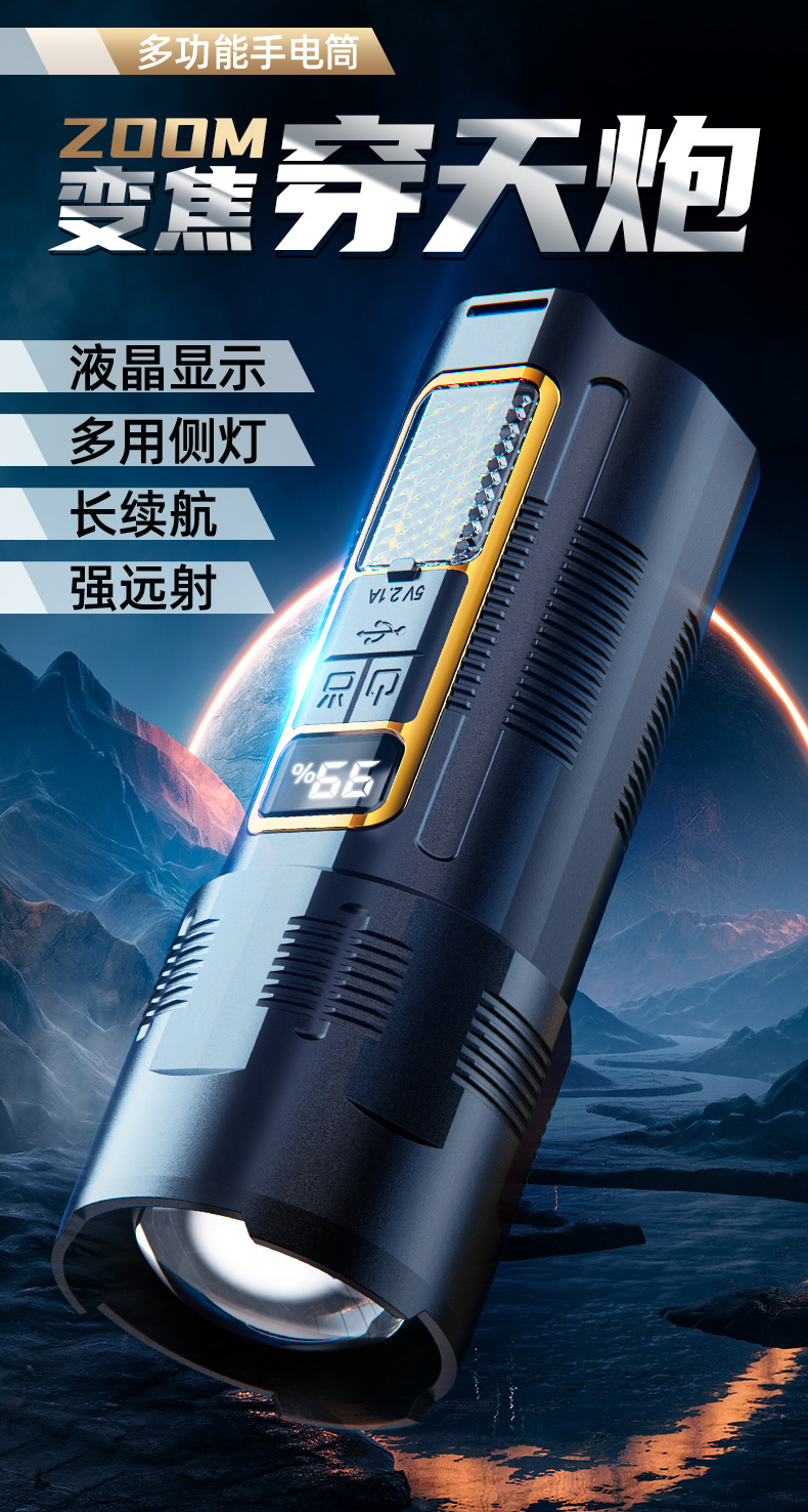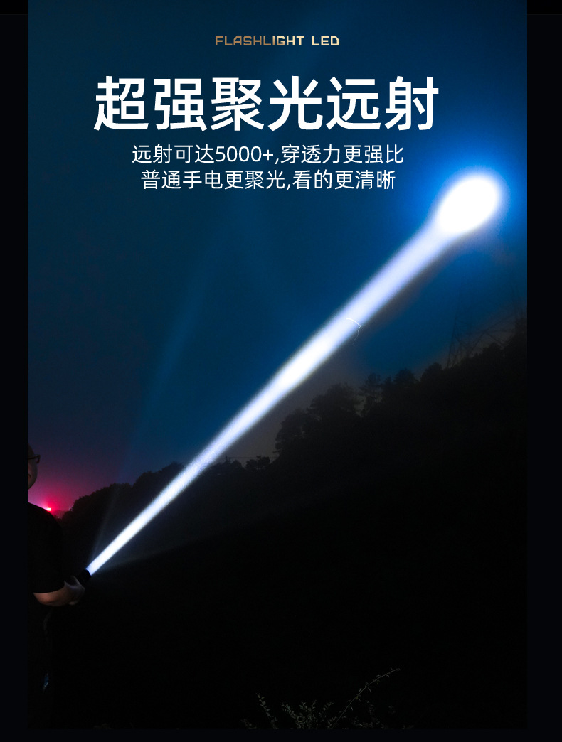 COB 작업 조명이있는 30W 흰색 레이저 손전등 국경 새로운 손전등 USB 충전식 야외 조명스토어 가기