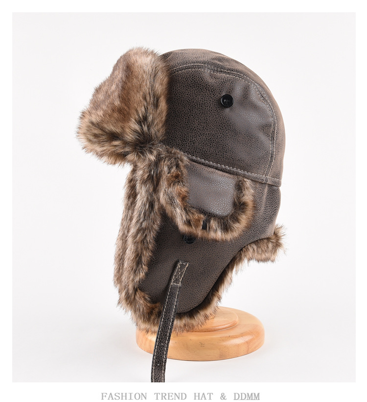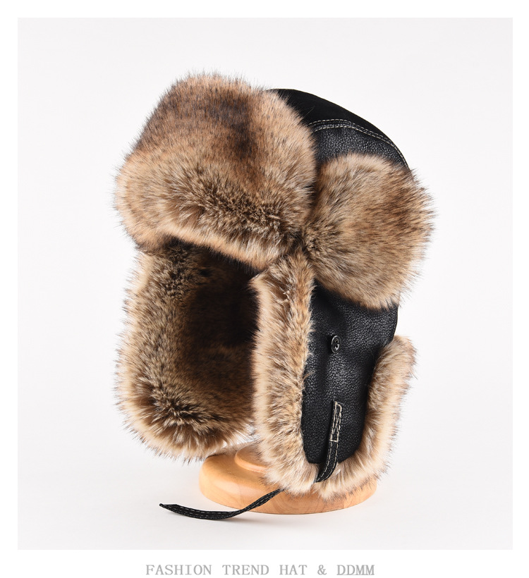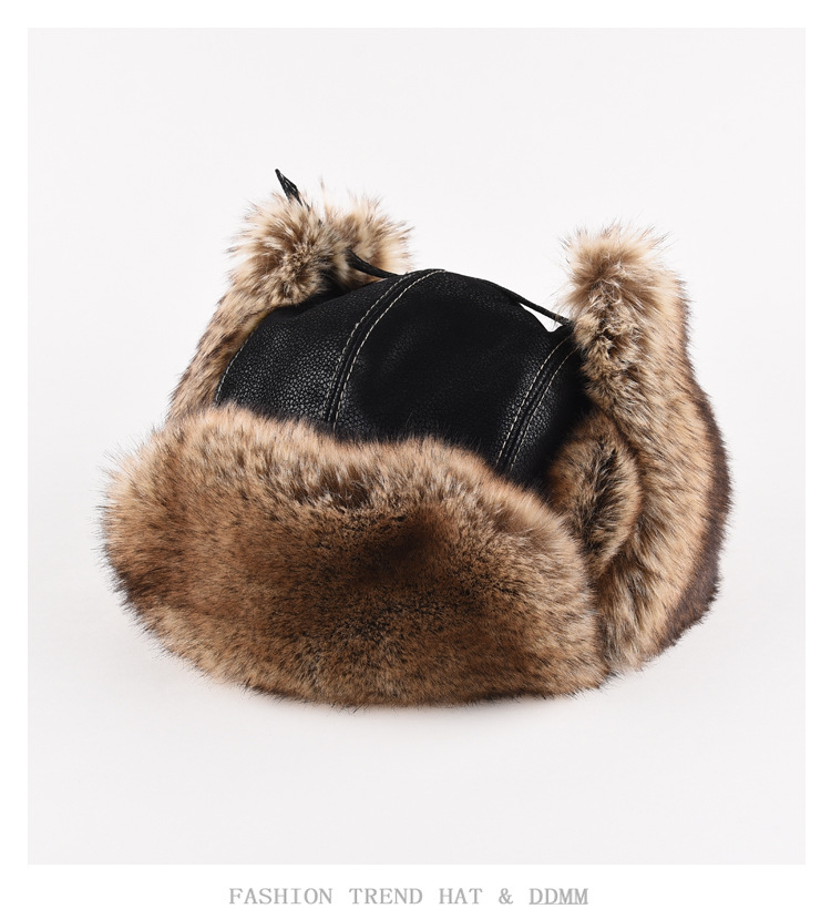 가죽 Lei Feng Cap 남자 겨울 두꺼운 봉제 귀 보호자 동북 냉방 자전거 빅 헤드 순환 기관차 대외 무역스토어 가기