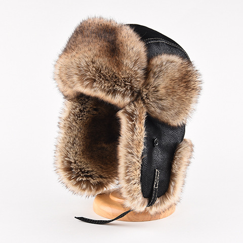 가죽 Lei Feng Cap 남자 겨울 두꺼운 봉제 귀 보호자 동북 냉방 자전거 빅 헤드 순환 기관차 대외 무역
