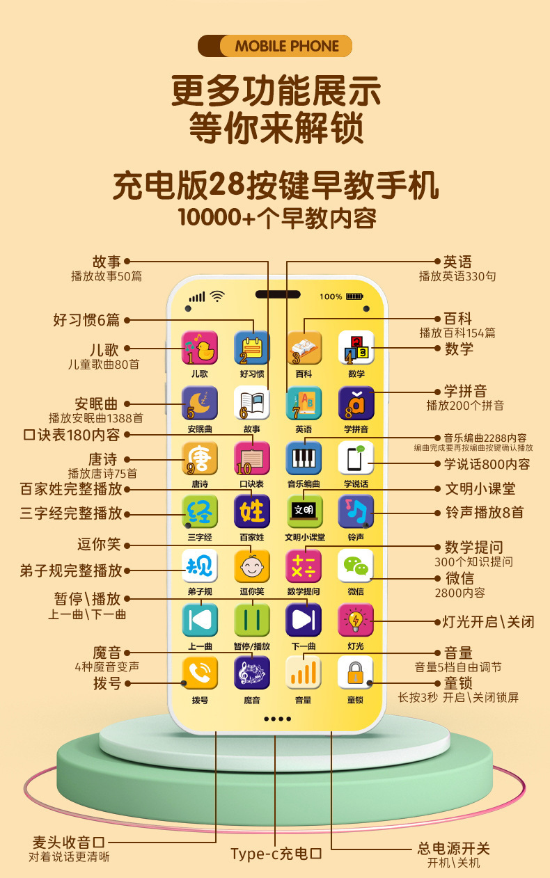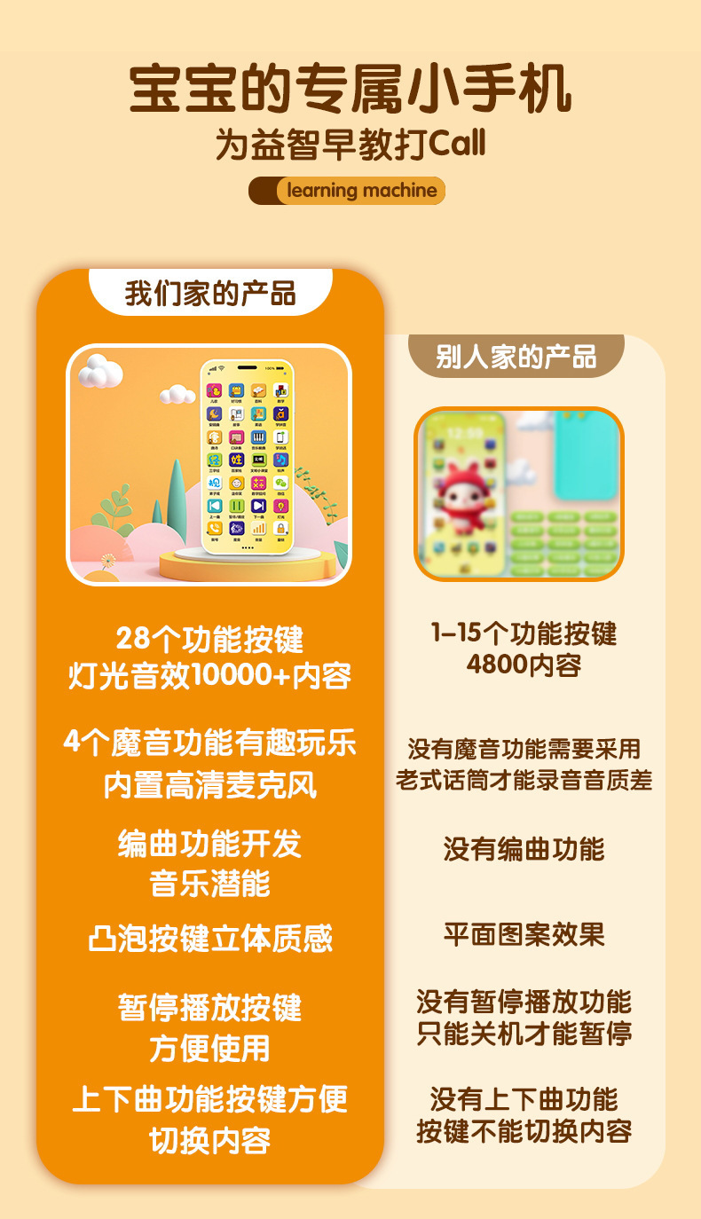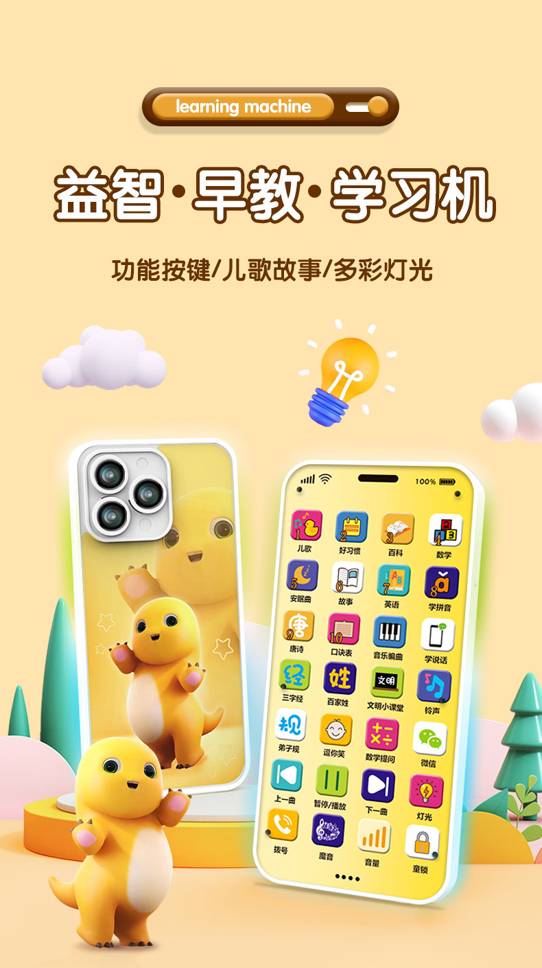 제조업체의 새로운 조기 교육 휴대 전화 장난감 교육 계몽 0-3 세 어린이 아기 터치 스크린 시뮬레이션 전화 도매스토어 가기