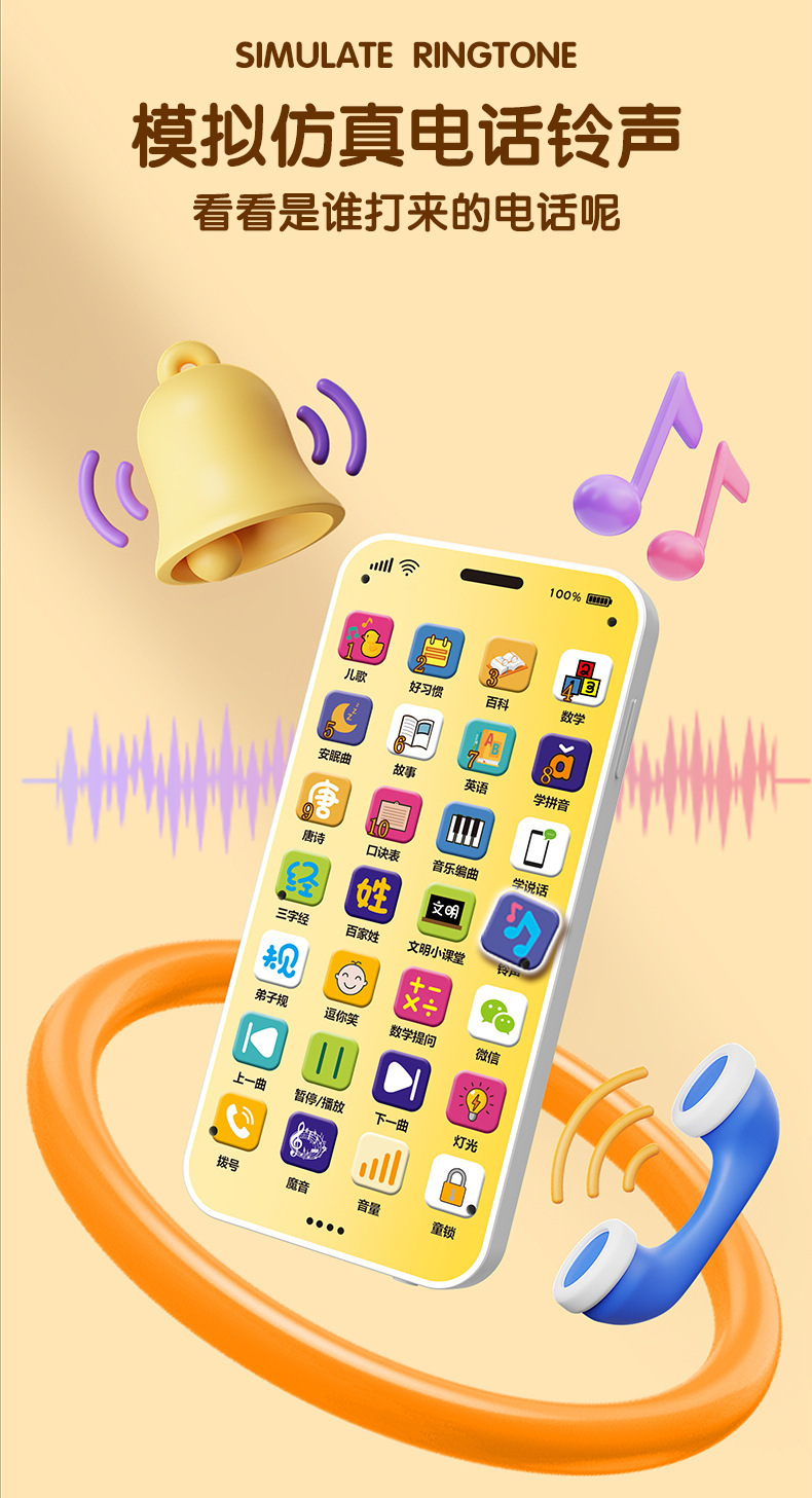 제조업체의 새로운 조기 교육 휴대 전화 장난감 교육 계몽 0-3 세 어린이 아기 터치 스크린 시뮬레이션 전화 도매