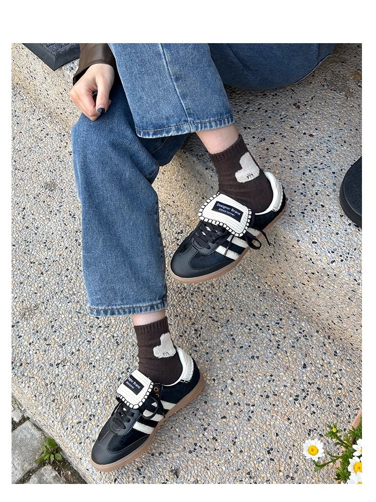 레오파드 무늬 독일 훈련 가죽 여성 신발 2024 봄 새로운 로우 탑 보드 신발 복고풍 플립 캐주얼 조커 운동화 조수스토어 가기