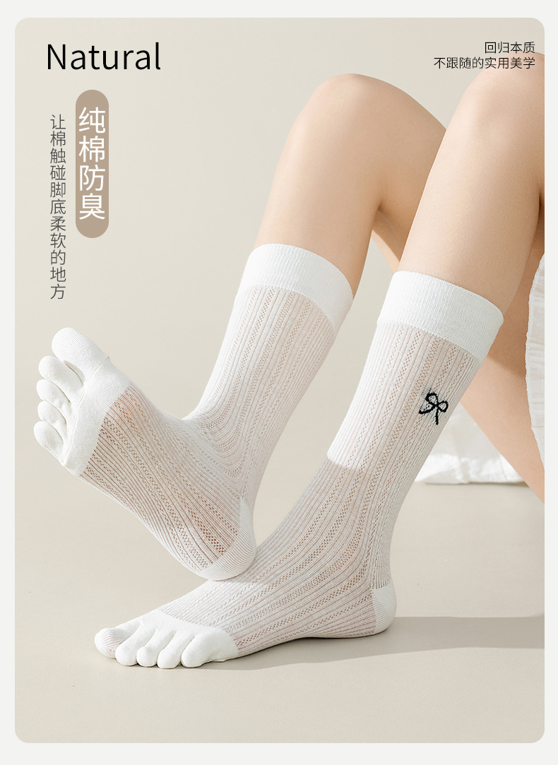 다섯 손가락 양말 여성의 여름 얇은 양말 여성의 중간 튜브 스택 양말 자수 활 일본 귀여운 발가락 양말 유행스토어 가기