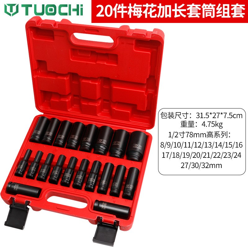 20 조각 Torx 슬리브 12 각 작은 공기 대포 공압 굴착 소매 1/2 대형 비행 빠른 렌치 소매 길이 78mm스토어 가기