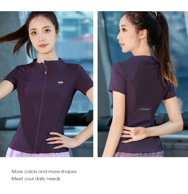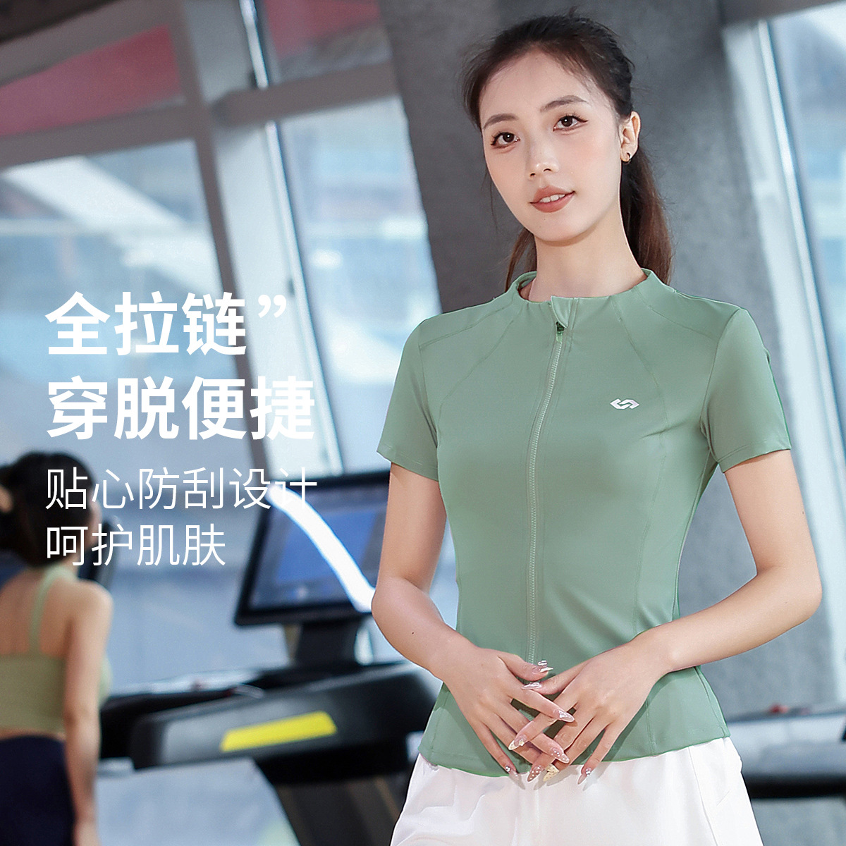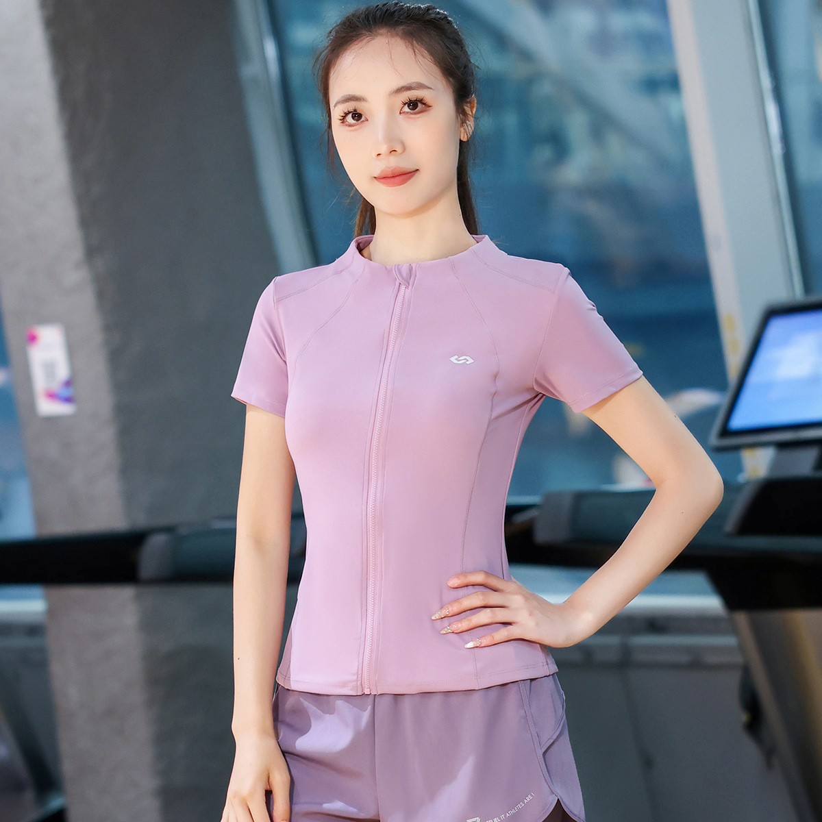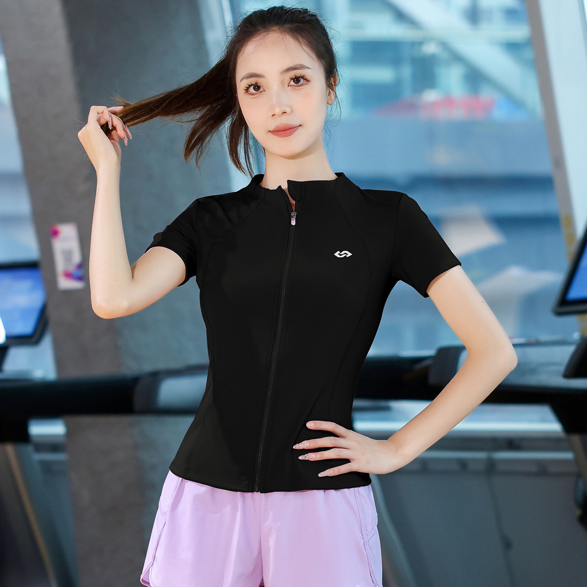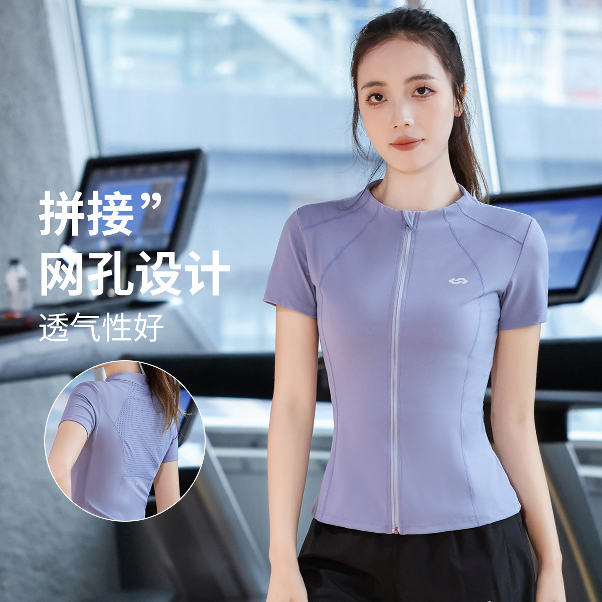 여름 야외 빠른 건조 스포츠 반팔 티셔츠 여성용 슬림핏 슬리밍 피트니스 옷 통기성 지퍼 카디건 요가 달리기