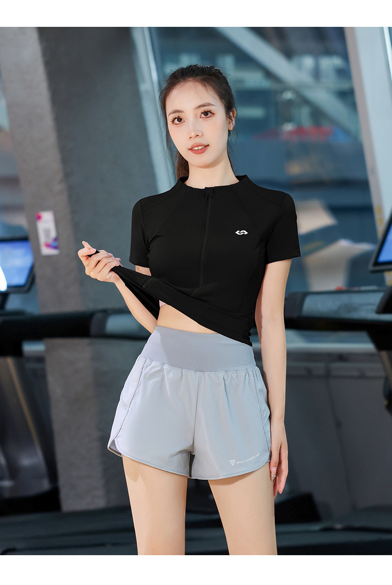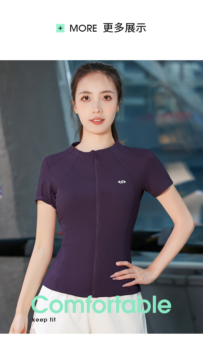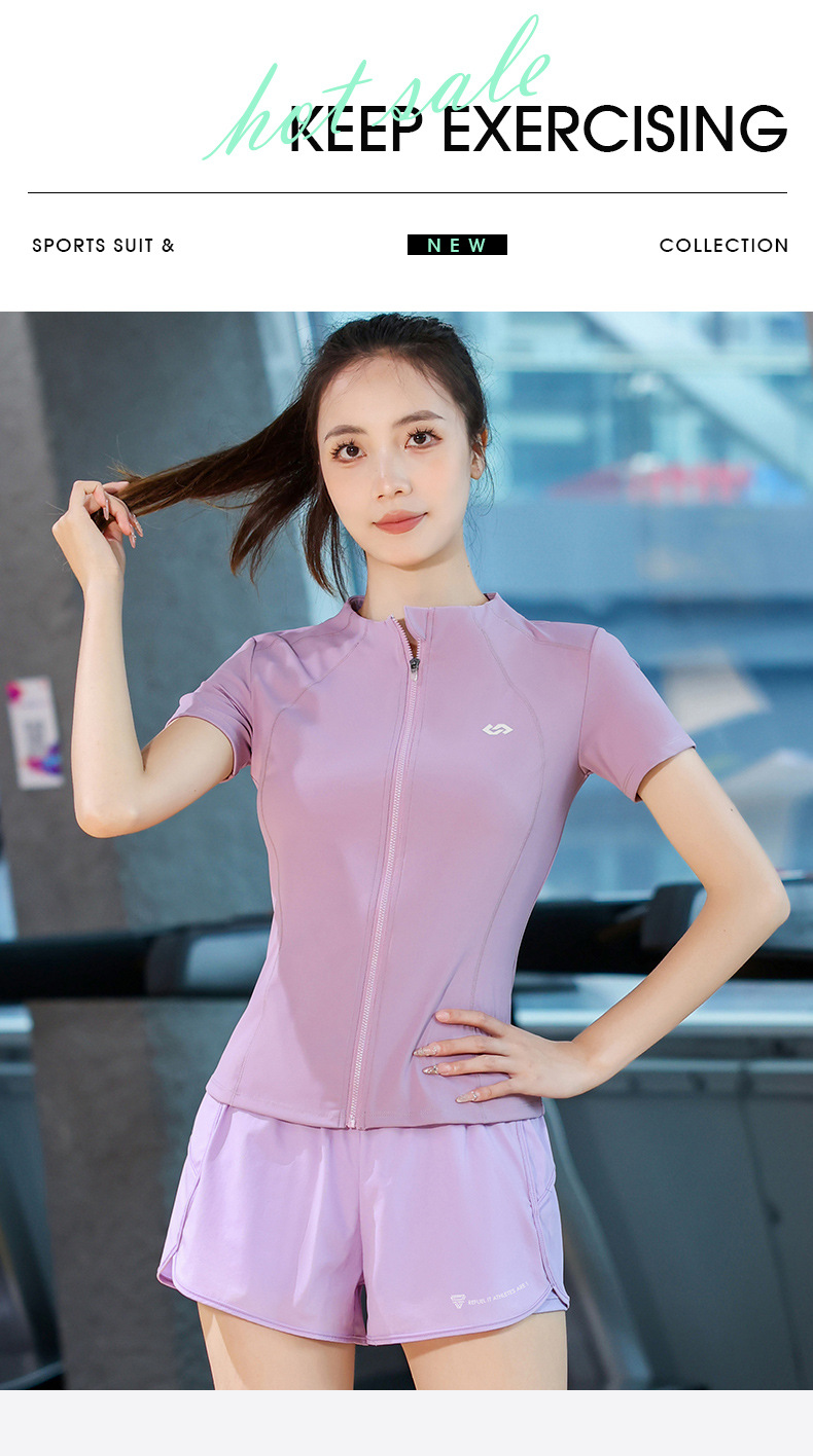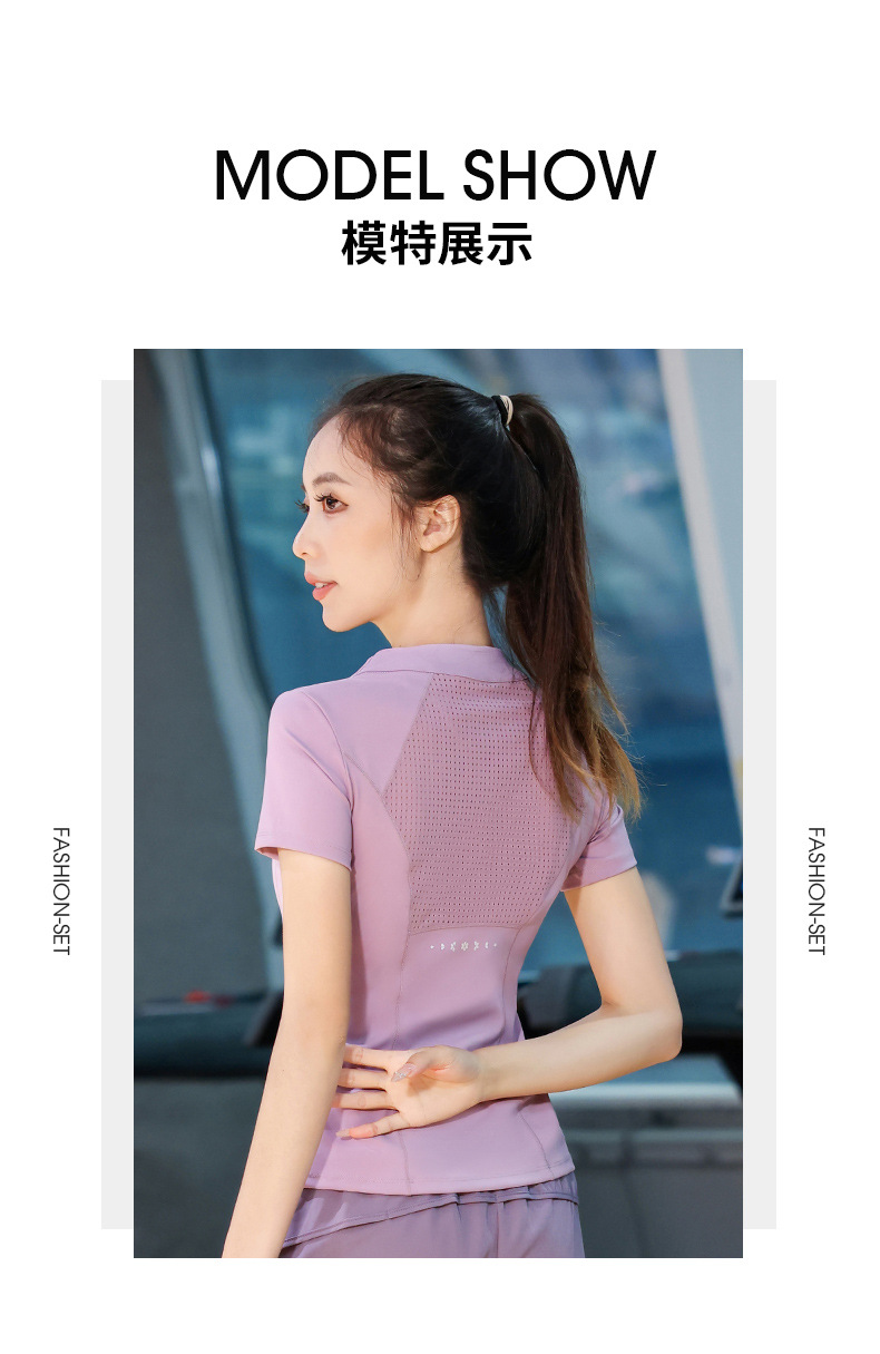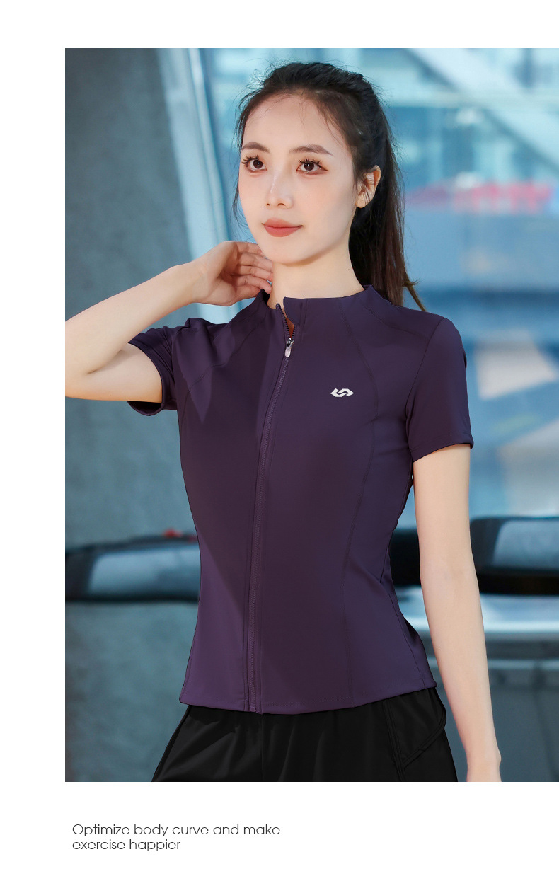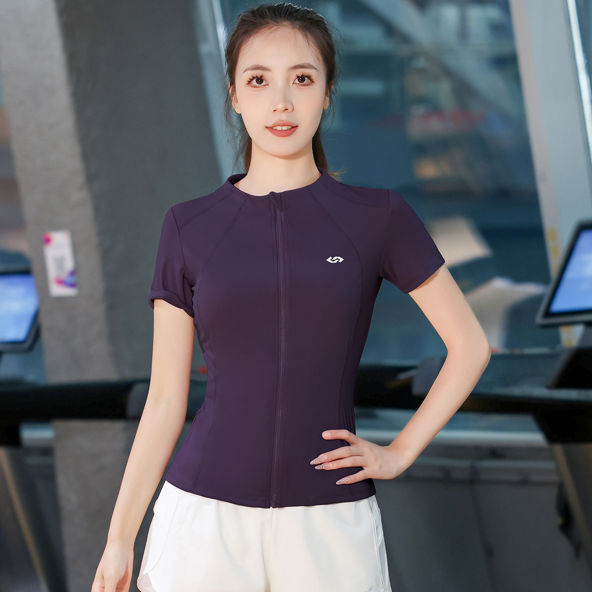 여름 야외 빠른 건조 스포츠 반팔 티셔츠 여성용 슬림핏 슬리밍 피트니스 옷 통기성 지퍼 카디건 요가 달리기