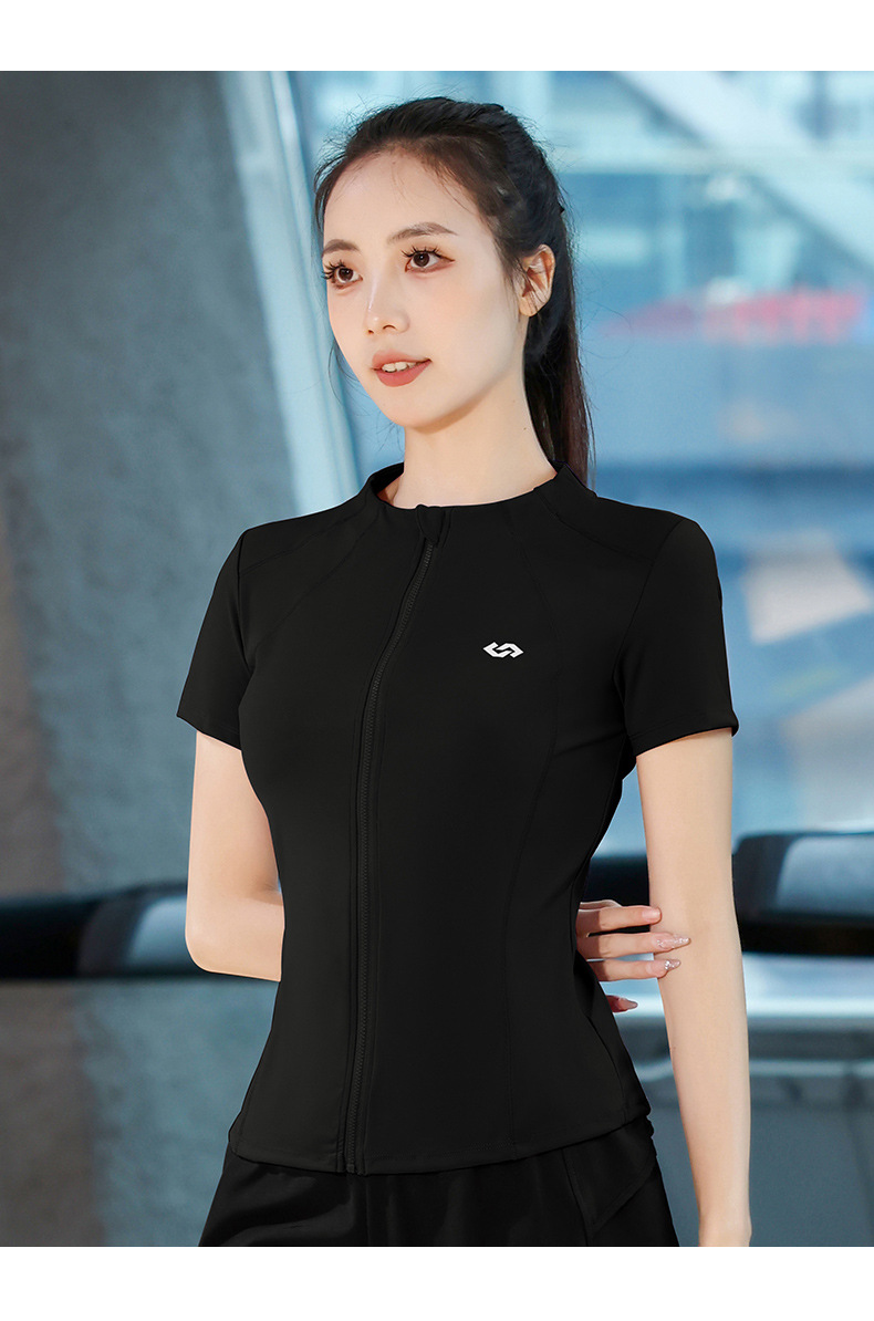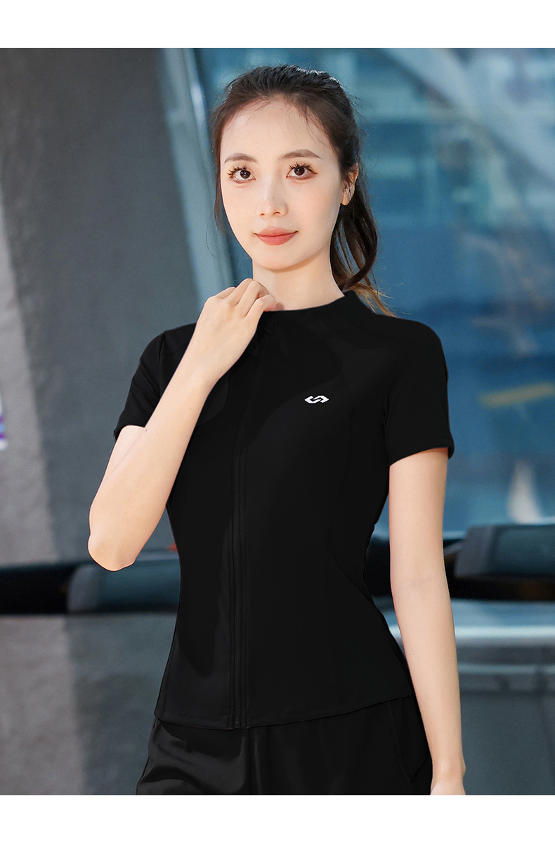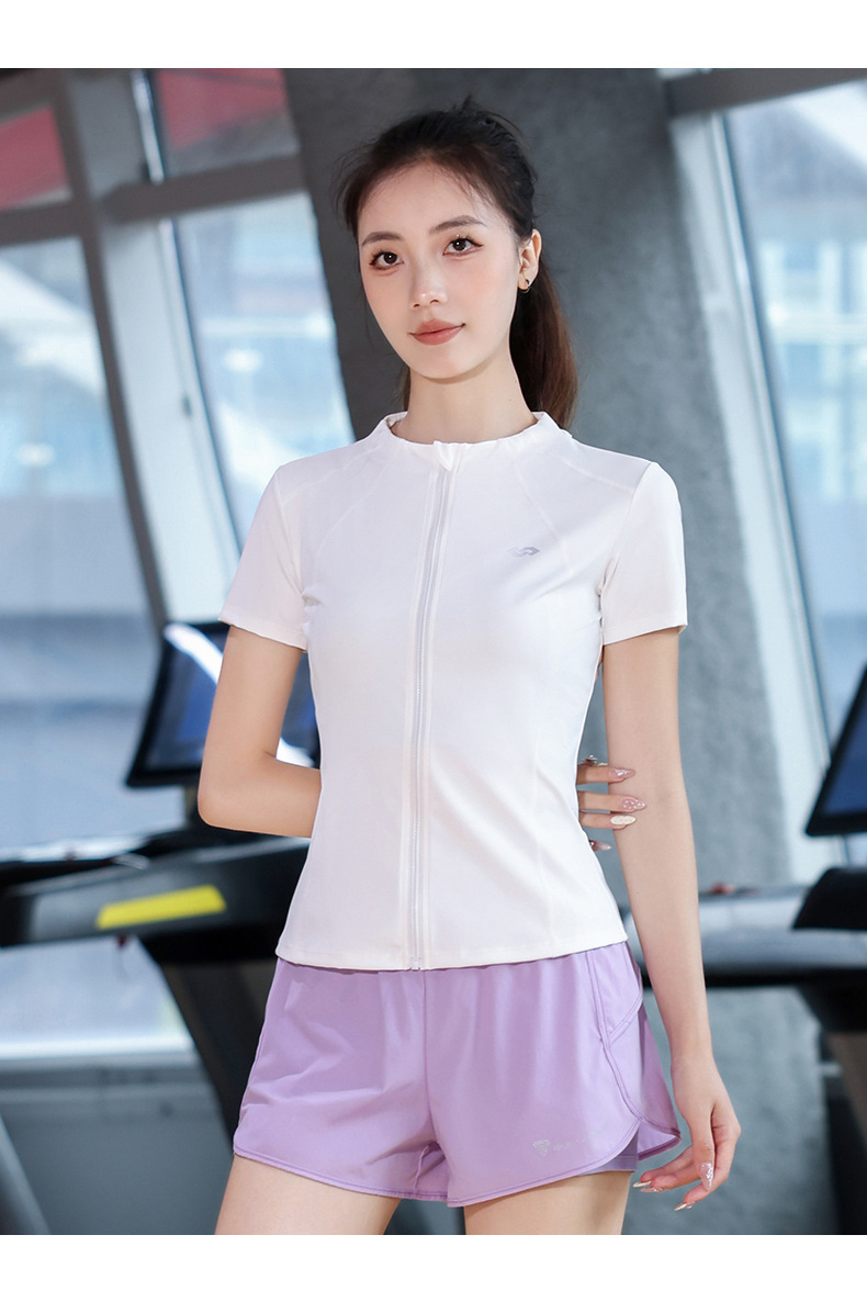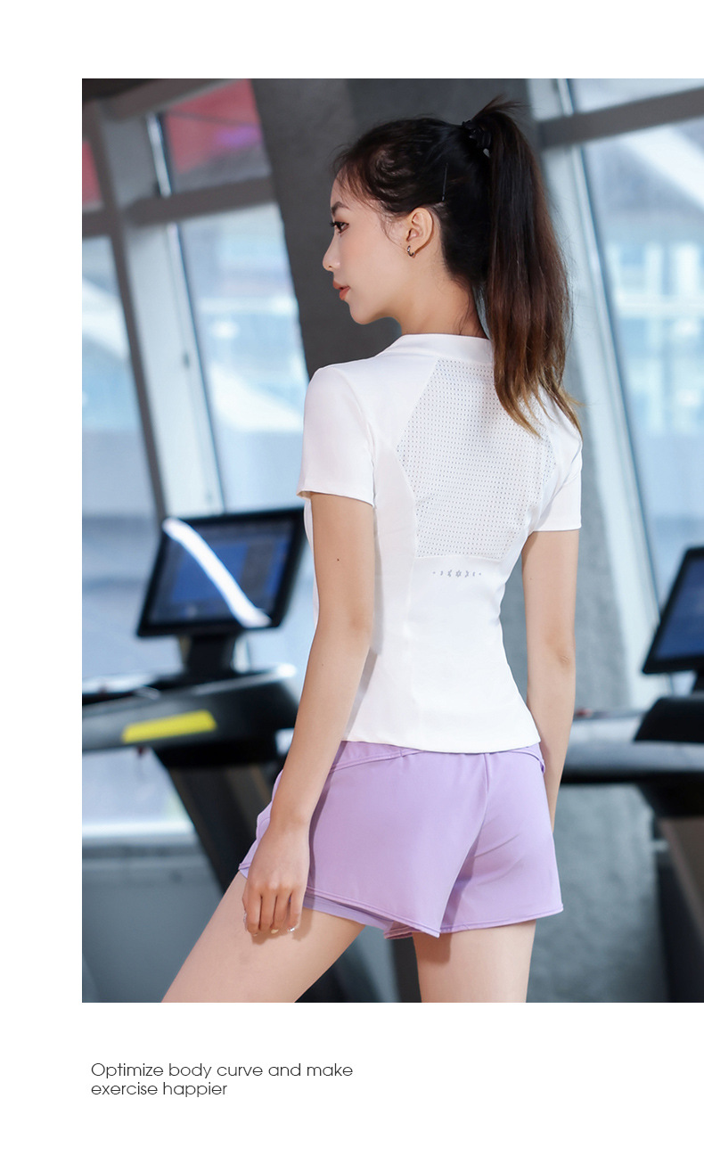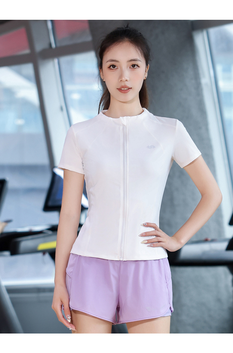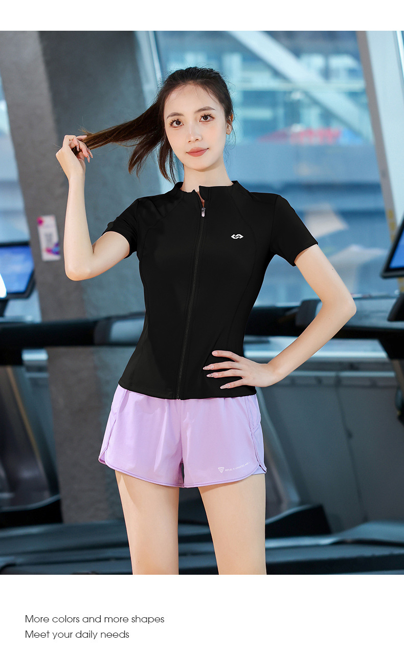 여름 야외 빠른 건조 스포츠 반팔 티셔츠 여성용 슬림핏 슬리밍 피트니스 옷 통기성 지퍼 카디건 요가 달리기