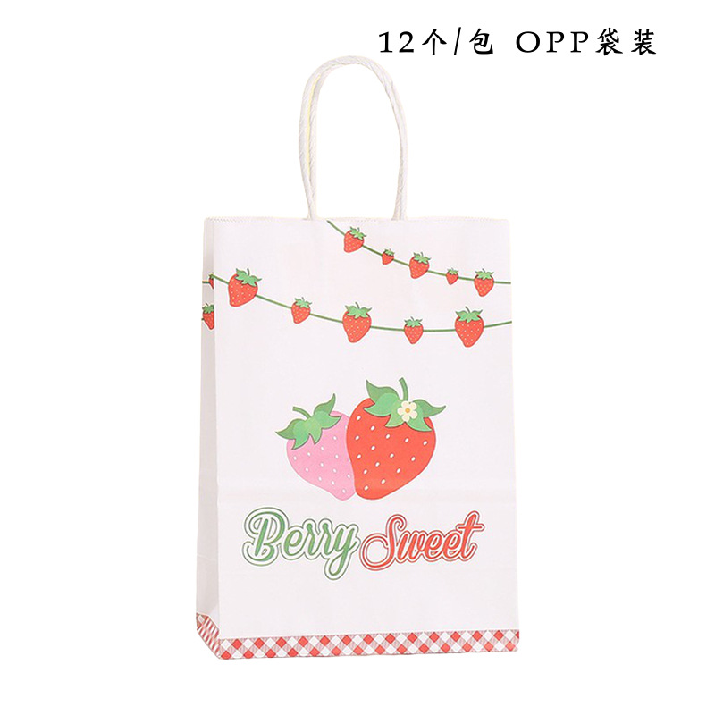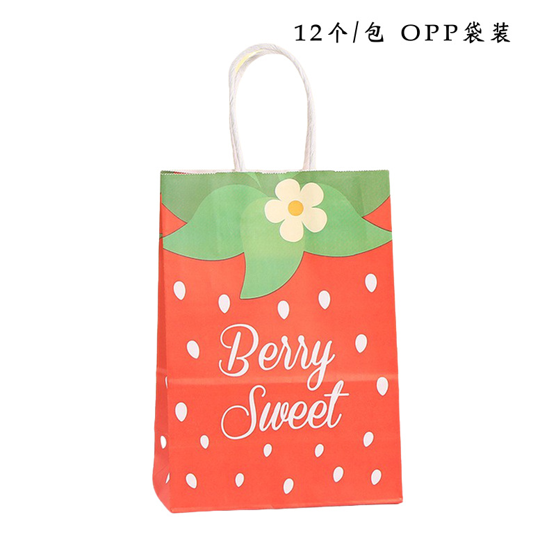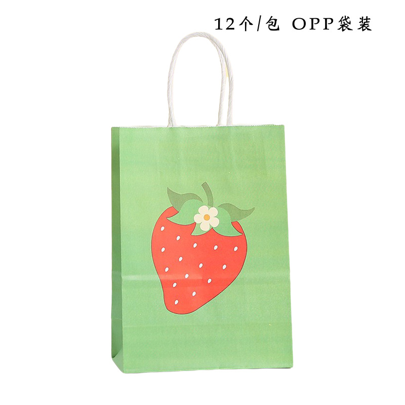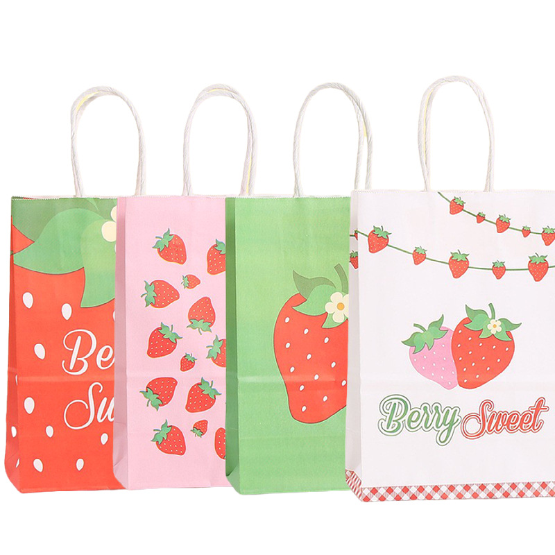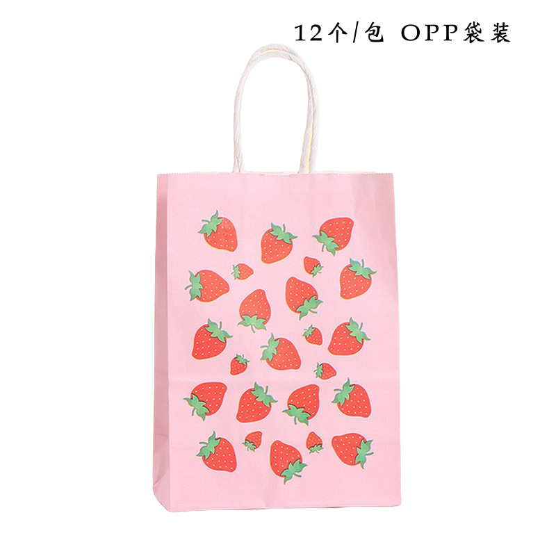 딸기 과일 토트백 만화 쇼핑백 과일 선물 가방 간식 포장 가방 크라프트 종이 토트백 심플