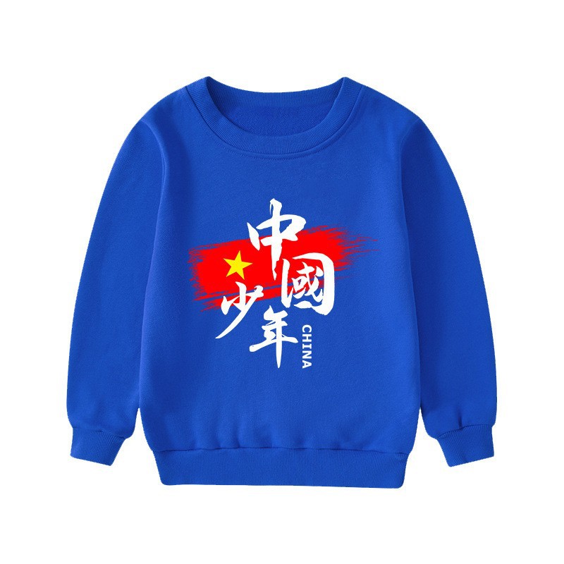설날 어린이 빨간색 스웨트셔츠 순면 애국심 초등학생 합창단 레드 노래 대회 공연 의상 유치원 교복