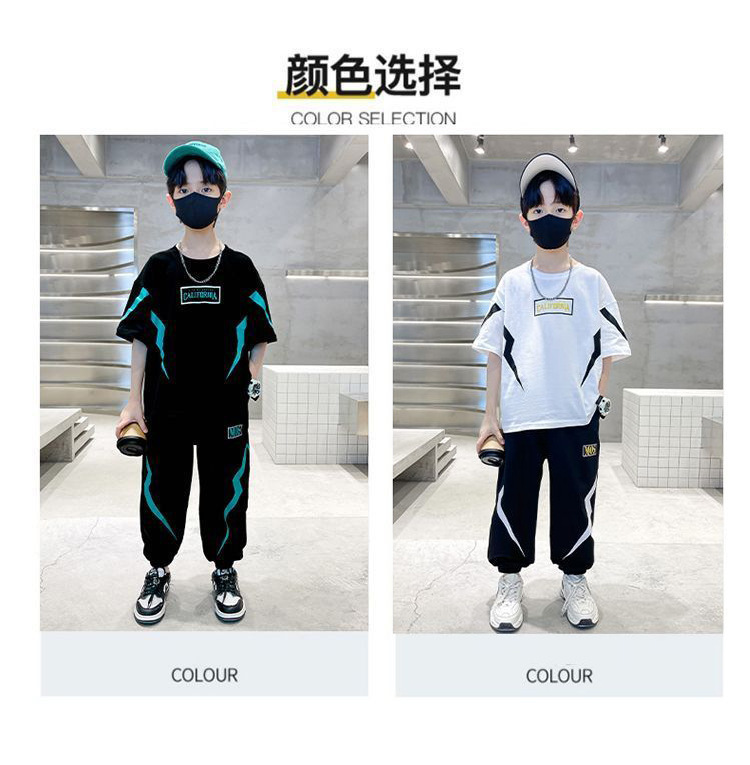 2024 여름 새로운 어린이 반팔 바지 세트 작은 소년 패션 캐주얼 스포츠 외부 착용 투피스 세트