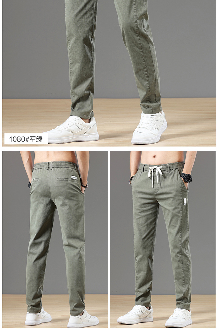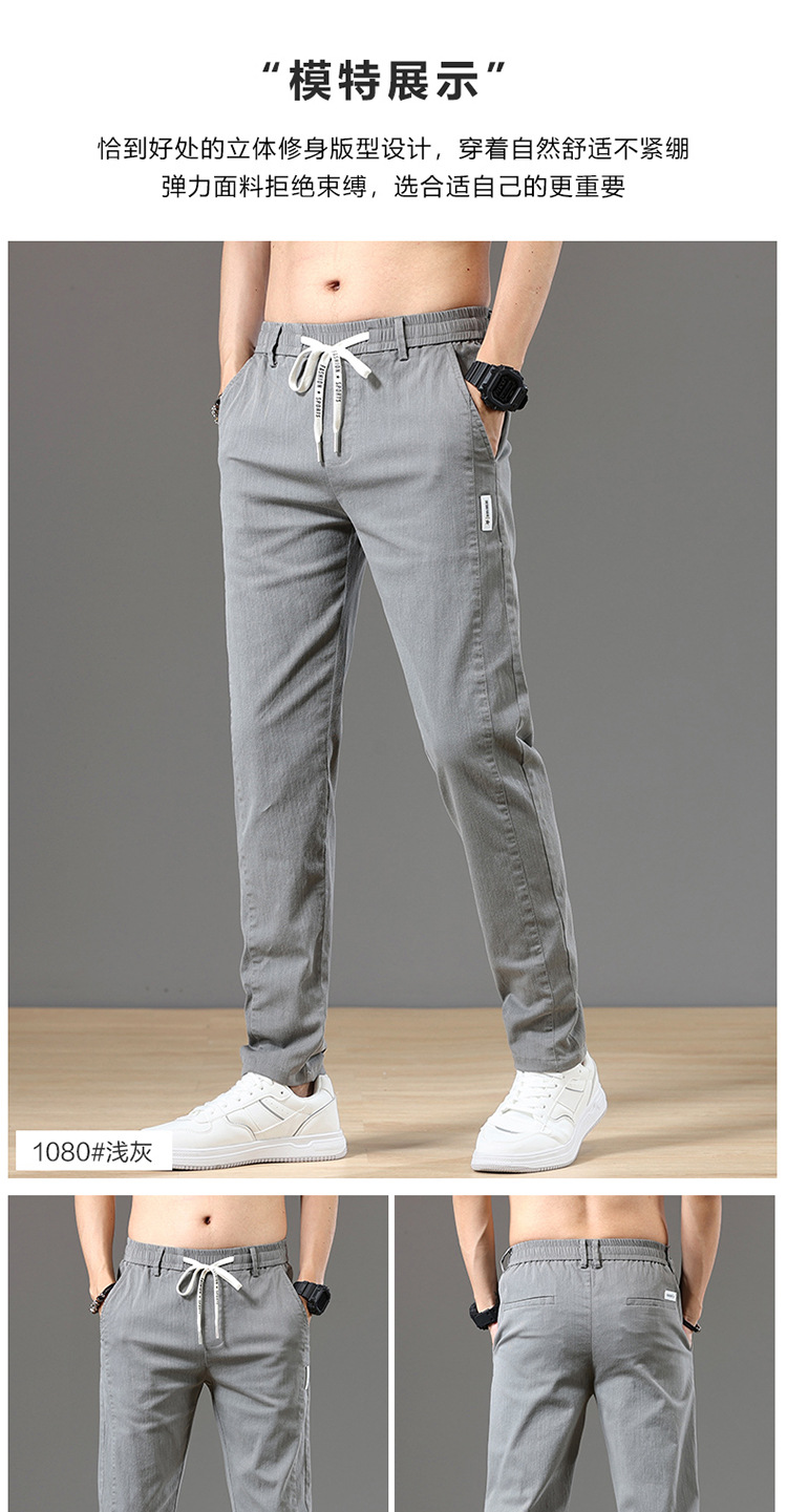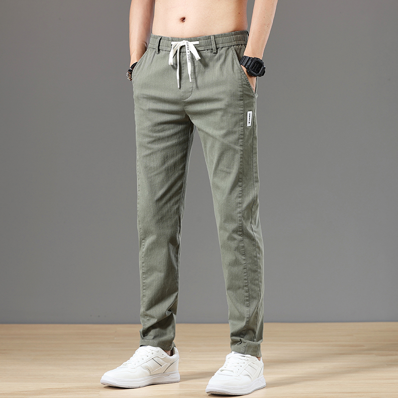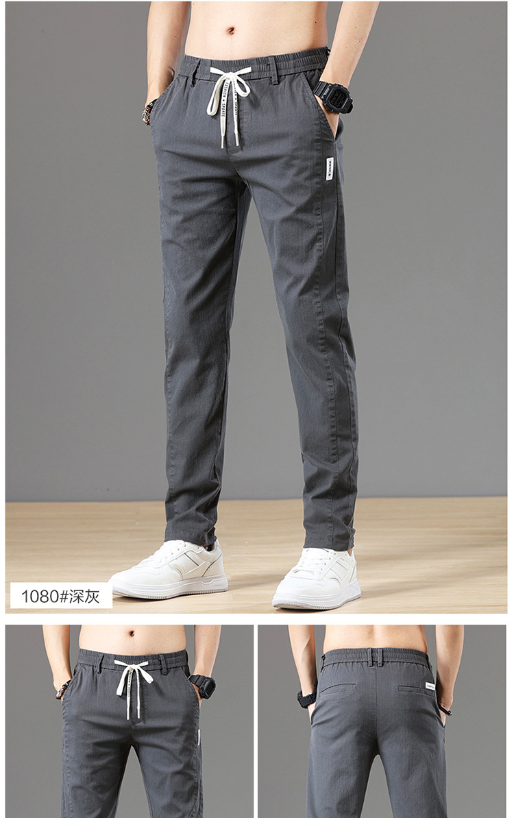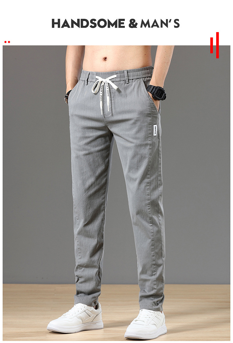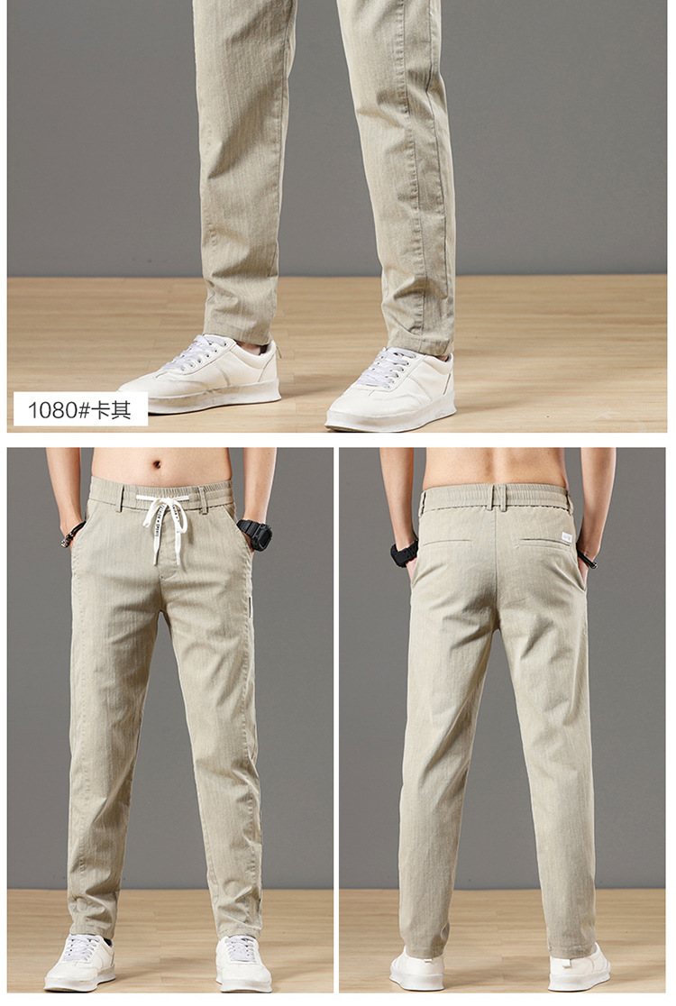 캐주얼 바지 남자의 슬림 핏 스트레이트 바지 남자 2024 여름 얇은 트렌디 올 매치 패션 간단한 팔꿈치 바지스토어 가기