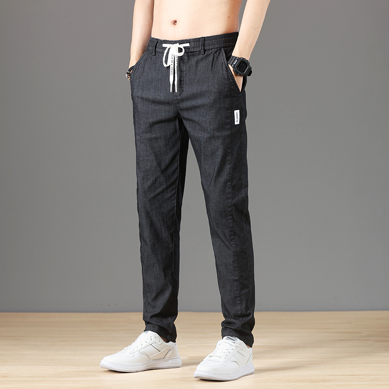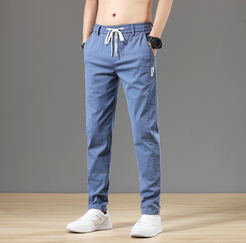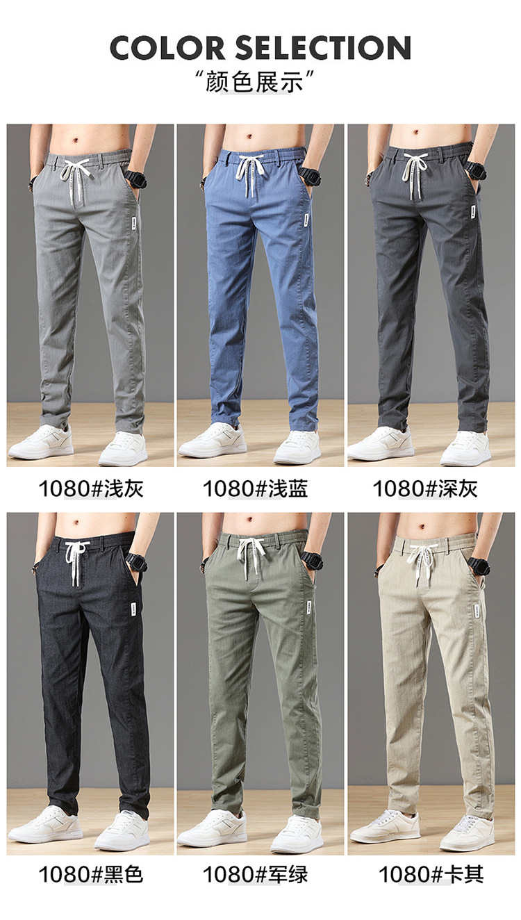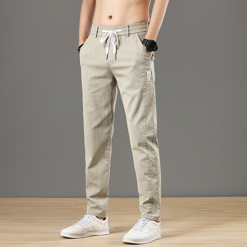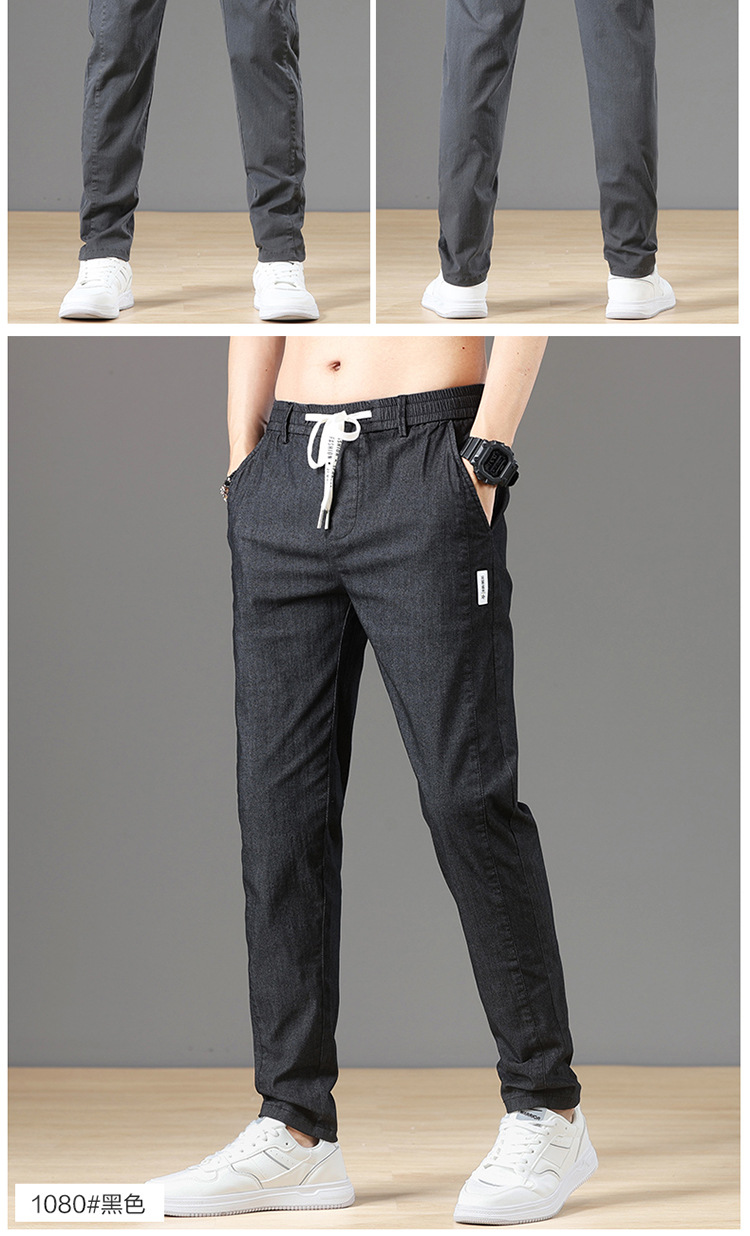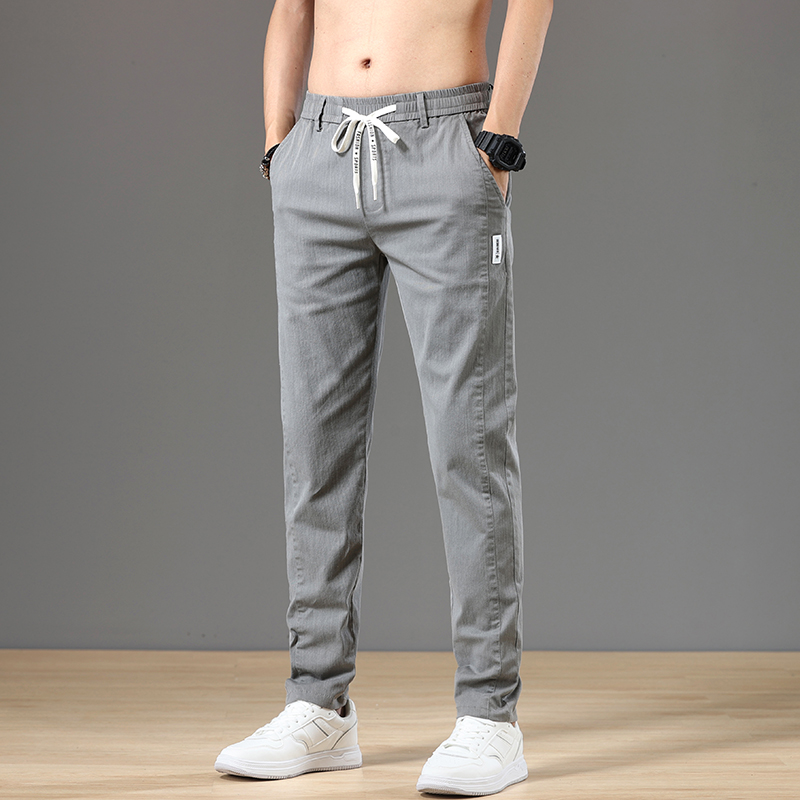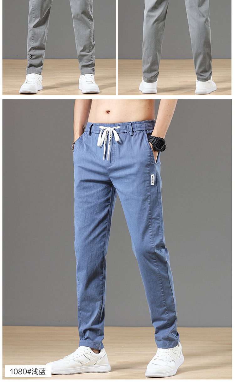 캐주얼 바지 남자의 슬림 핏 스트레이트 바지 남자 2024 여름 얇은 트렌디 올 매치 패션 간단한 팔꿈치 바지스토어 가기