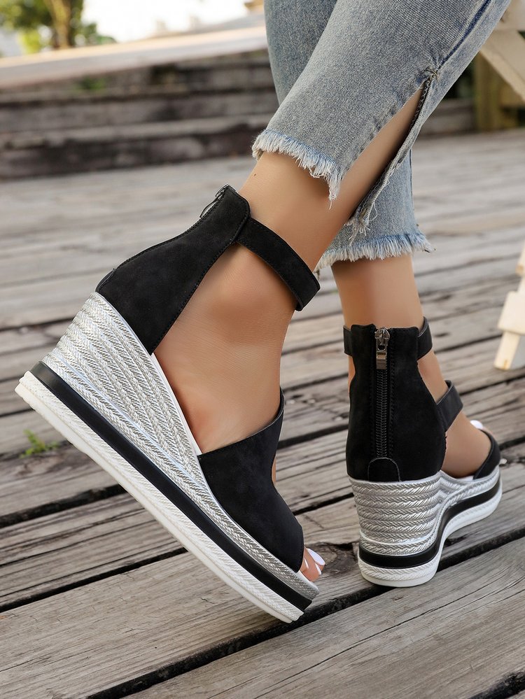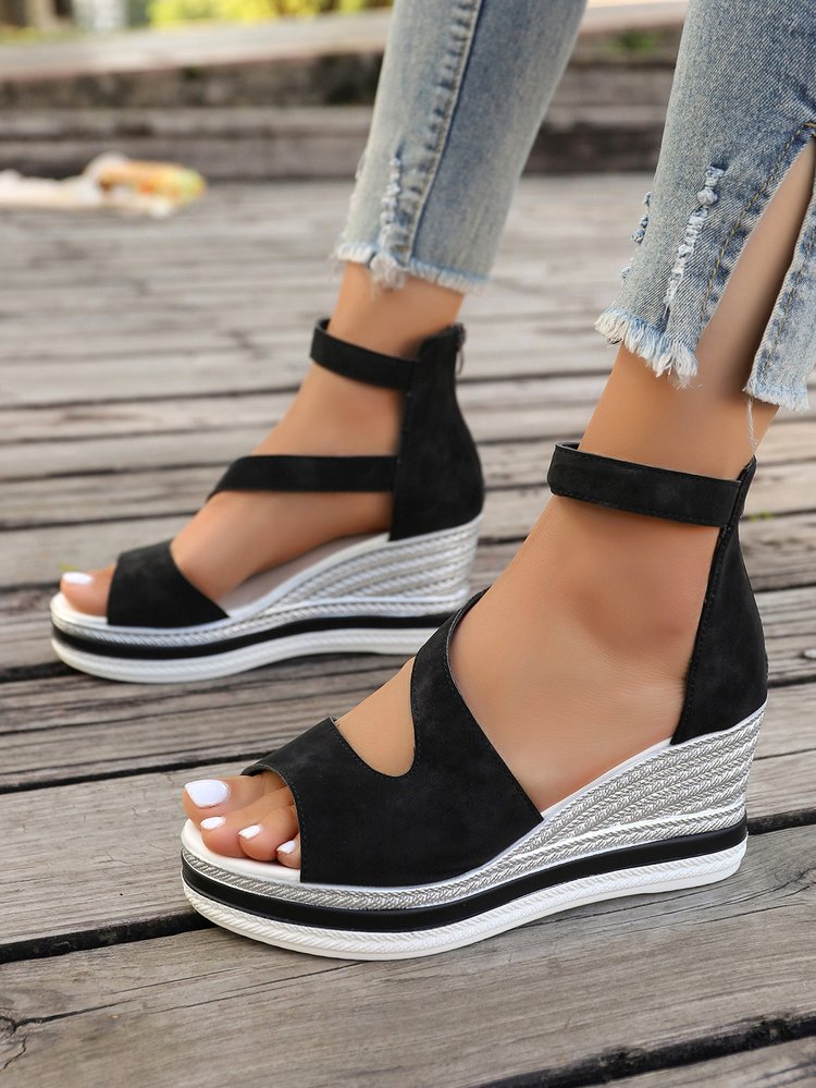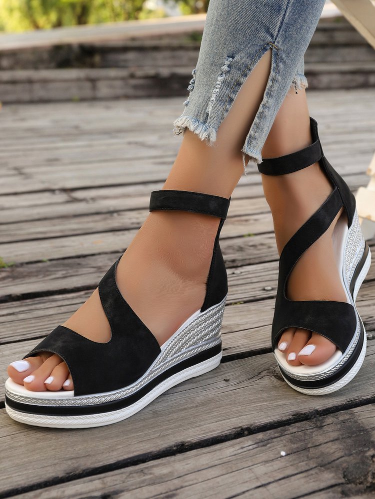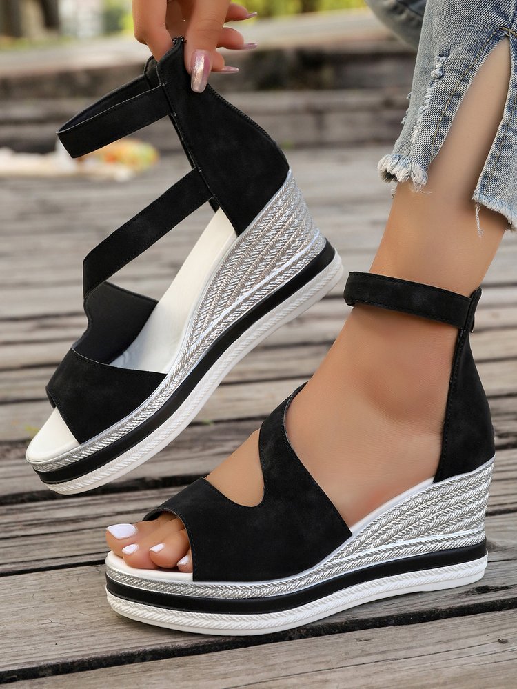 국경 간 플러스 사이즈 웨지 샌들 여자 2024 년 여름 새로운 유럽과 미국 스타일 하이 탑 다리 묶은 샌들 여성스토어 가기