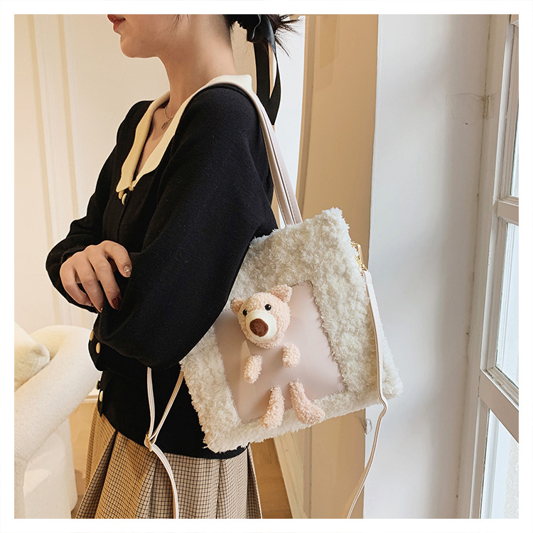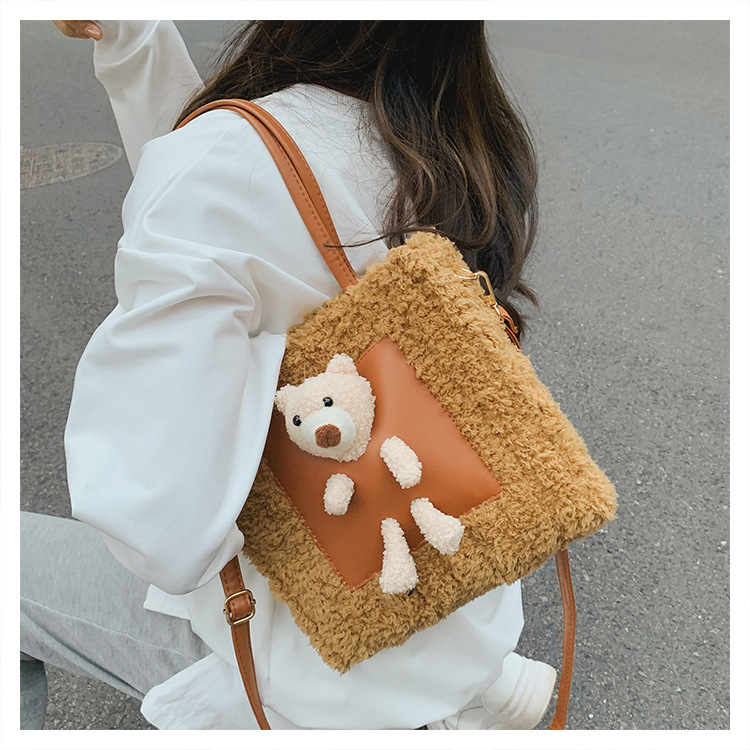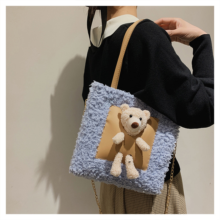 수제 짠 가방 패션 귀여운 곰 수제 DIY 소재 가방 손으로 짠 가방 어깨 가방 여자 친구