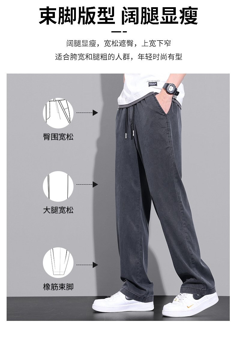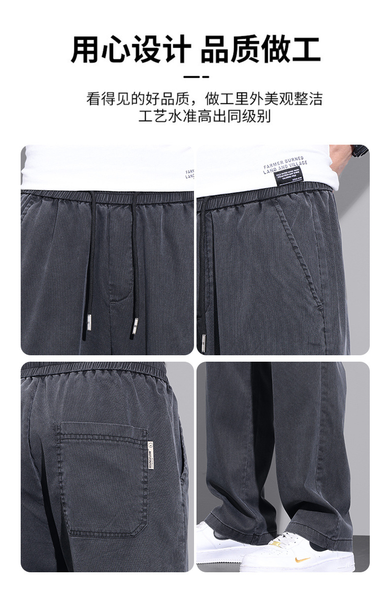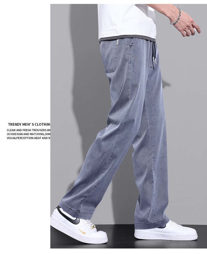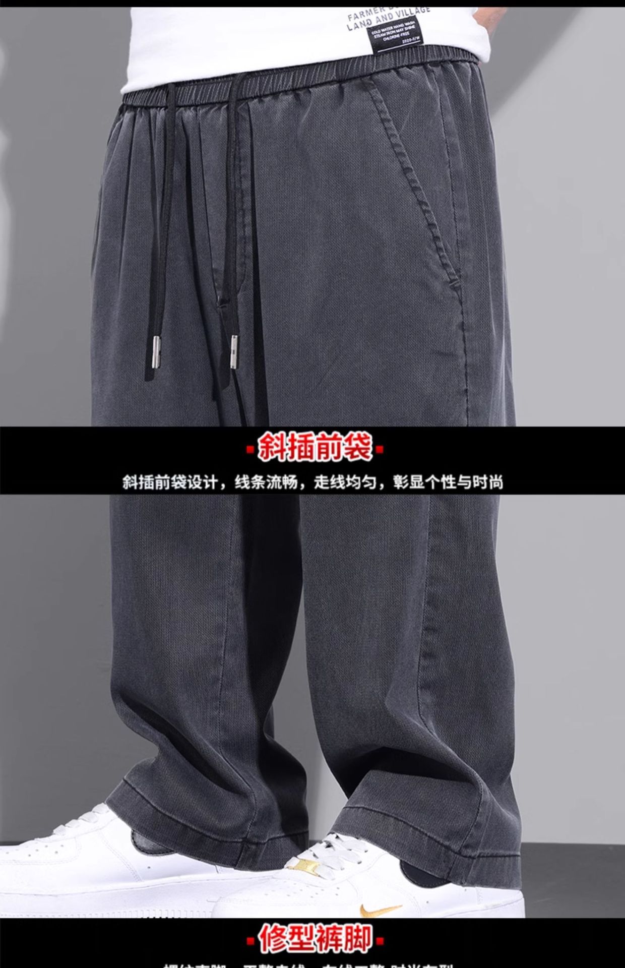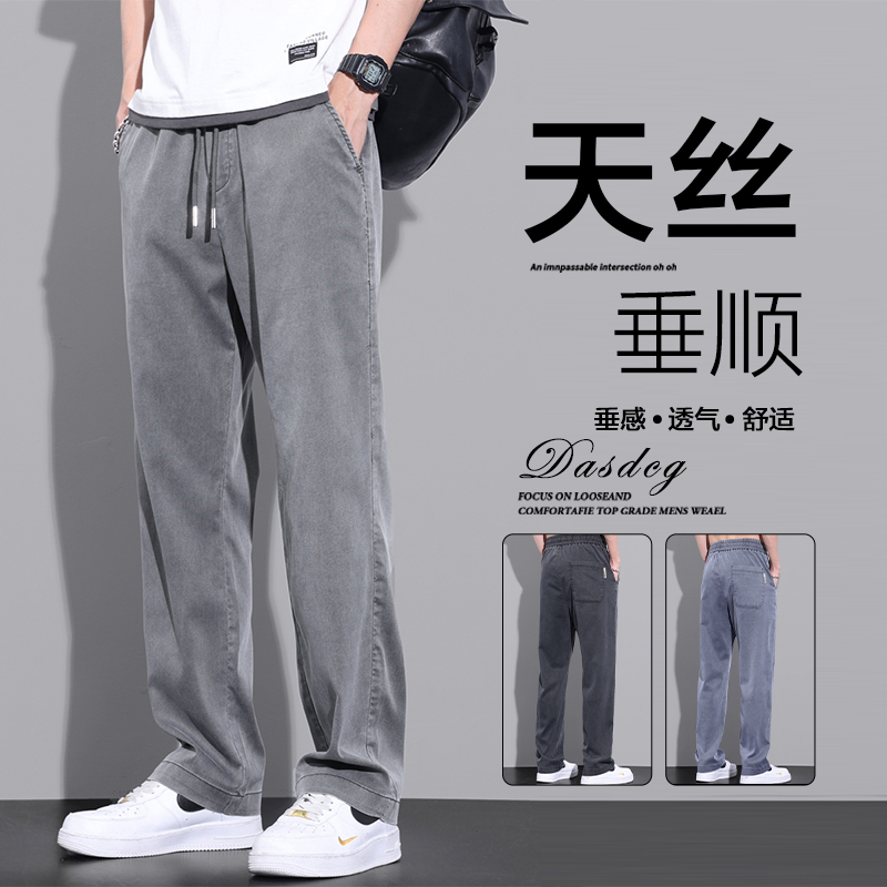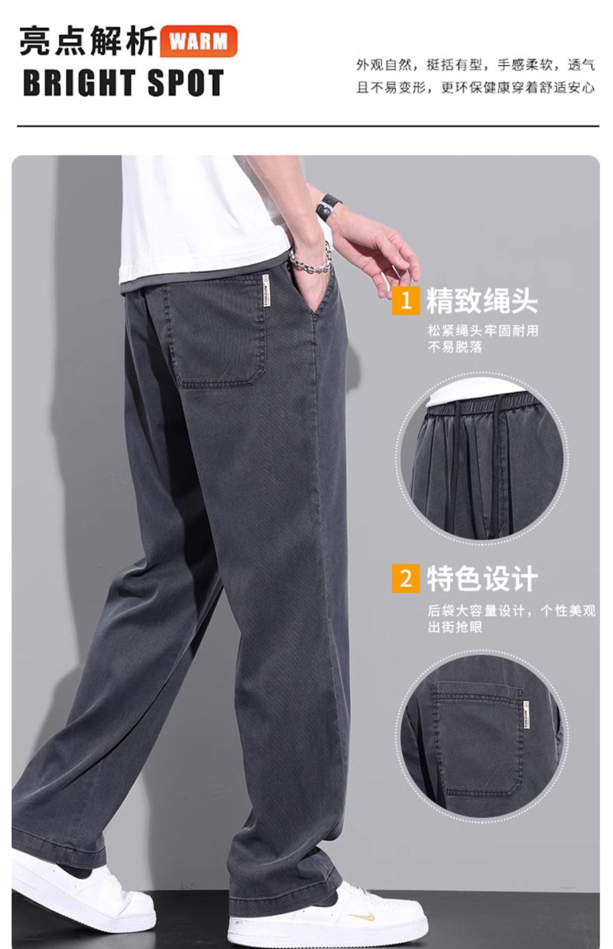 텐셀 청바지 남성 여름 얇은 2024 새로운 미국 스타일 트렌디 브랜드 느슨한 아이스 실크 쿨 캐주얼 긴 바지스토어 가기