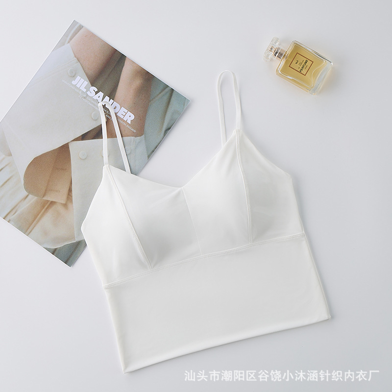 Shang Qianni 2225 아이스 실크 Traceless 아름다운 백 튜브 탑 패셔너블 올 매치 고정 컵 안티 러닝 여성용 작은 카미솔