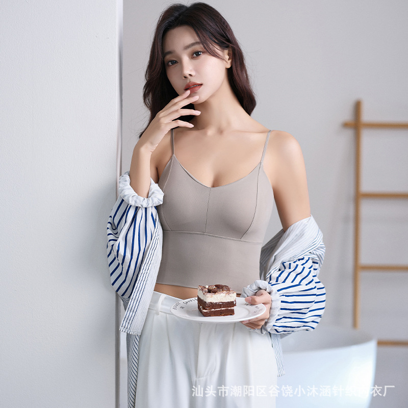 Shang Qianni 2225 아이스 실크 Traceless 아름다운 백 튜브 탑 패셔너블 올 매치 고정 컵 안티 러닝 여성용 작은 카미솔스토어 가기